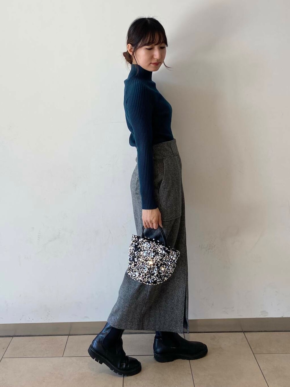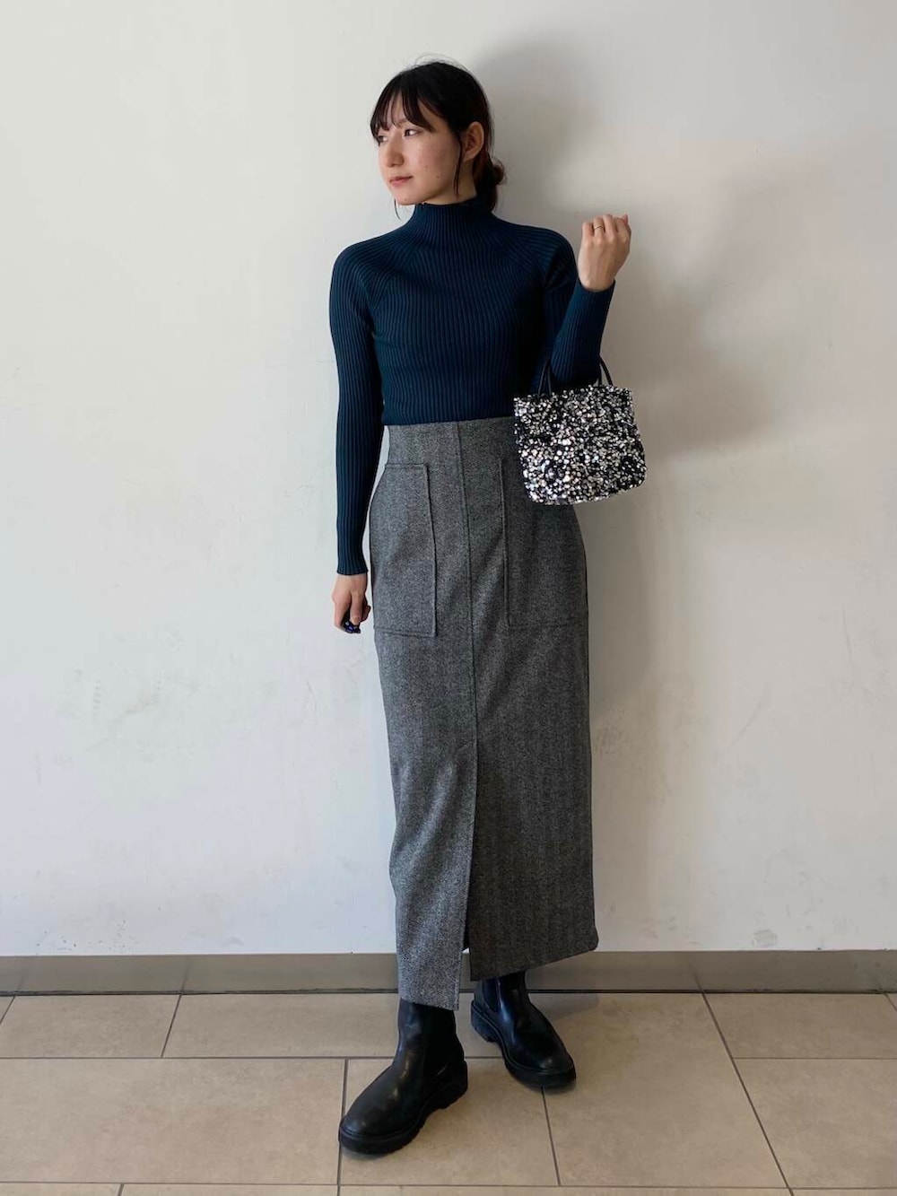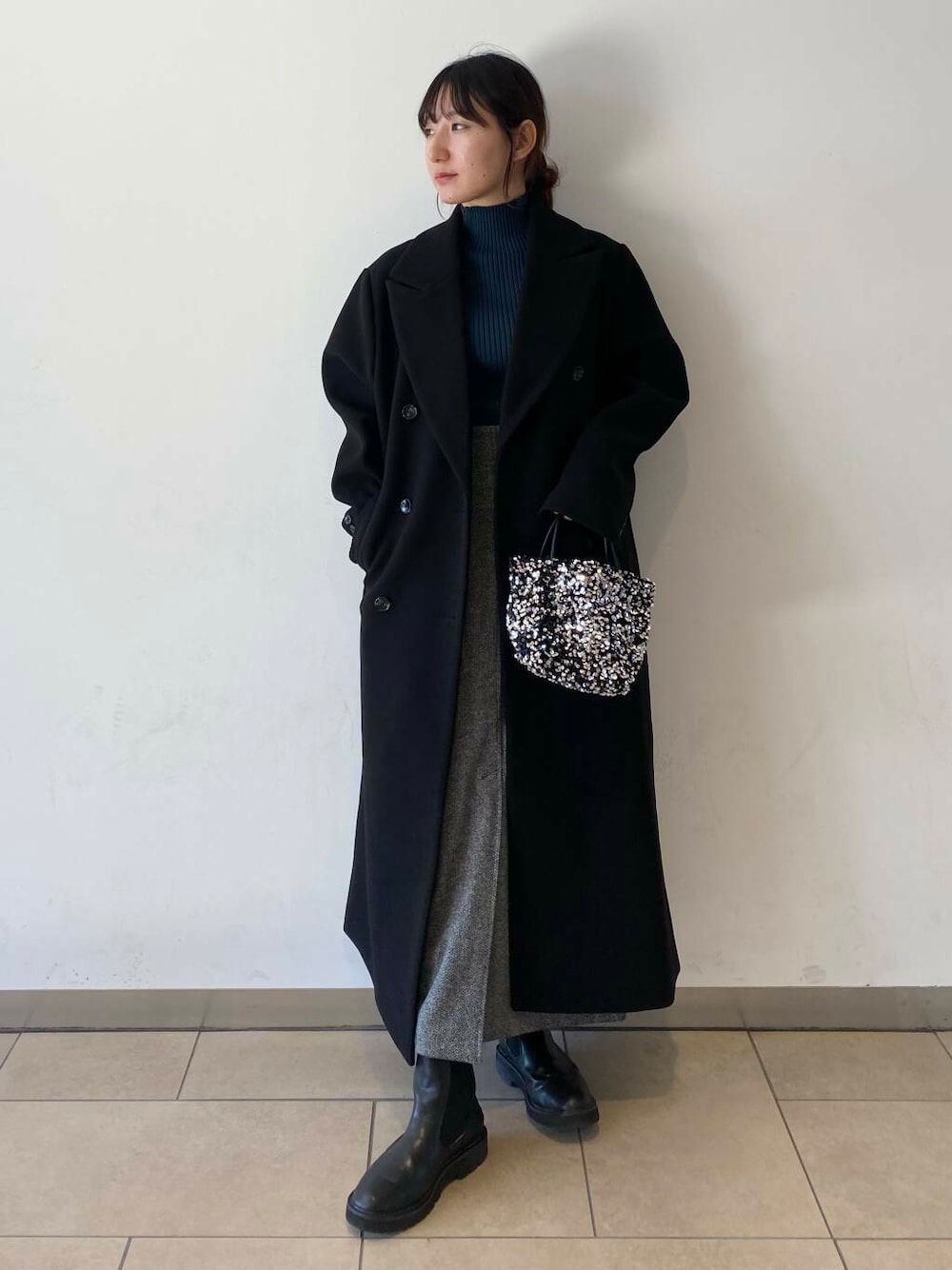 ロングコートは首ものスッキリなのでリブハイと合わせると可愛いくておすすめです!