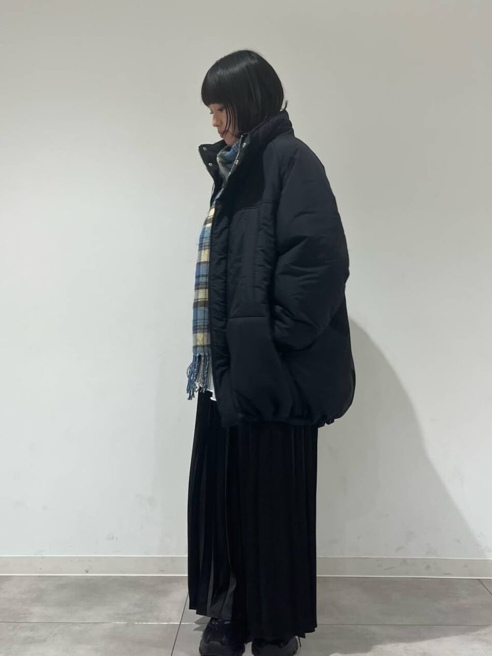 全身を黒でまとめてマフラーが映えるコーデを組んでみました🦋
