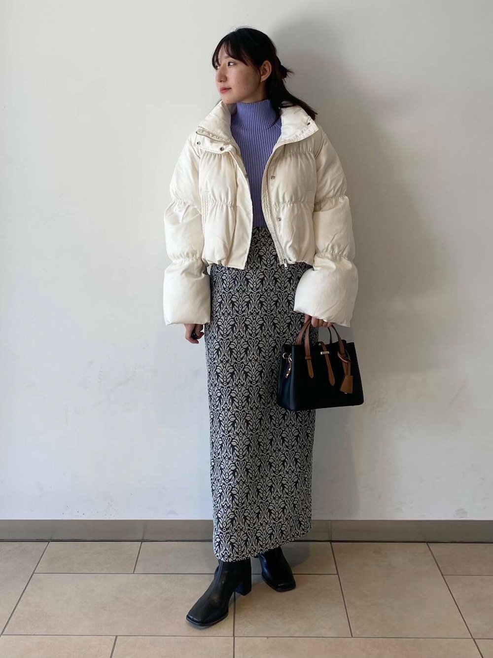 ショート丈のダウンは裾が絞れてボトムスによって雰囲気変えられます◎
