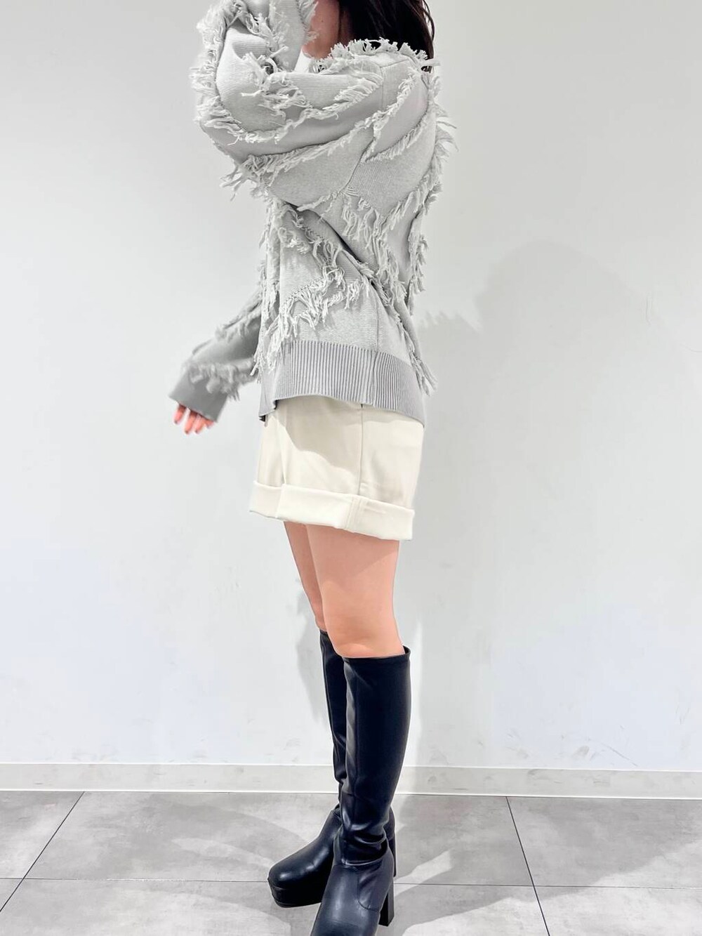 フリンジセーターは丈が長めにできているためショート丈のボトムスと相性がいいです🌟