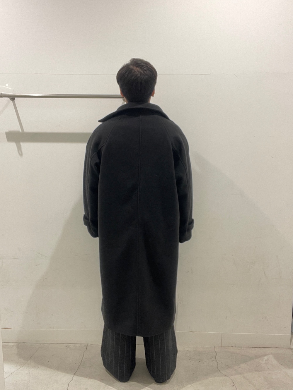 黒コートをベースに、灰色スウェットと水色シャツで軽さをプラス⬛️🟦