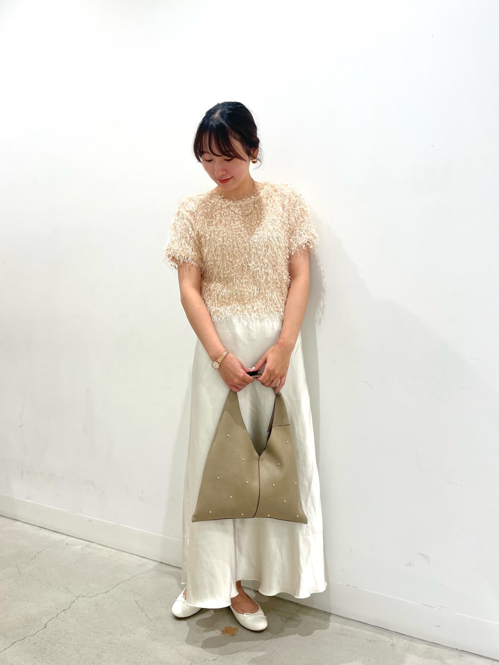 フリンジが可愛いトップスは着丈短めなので脚長効果◎