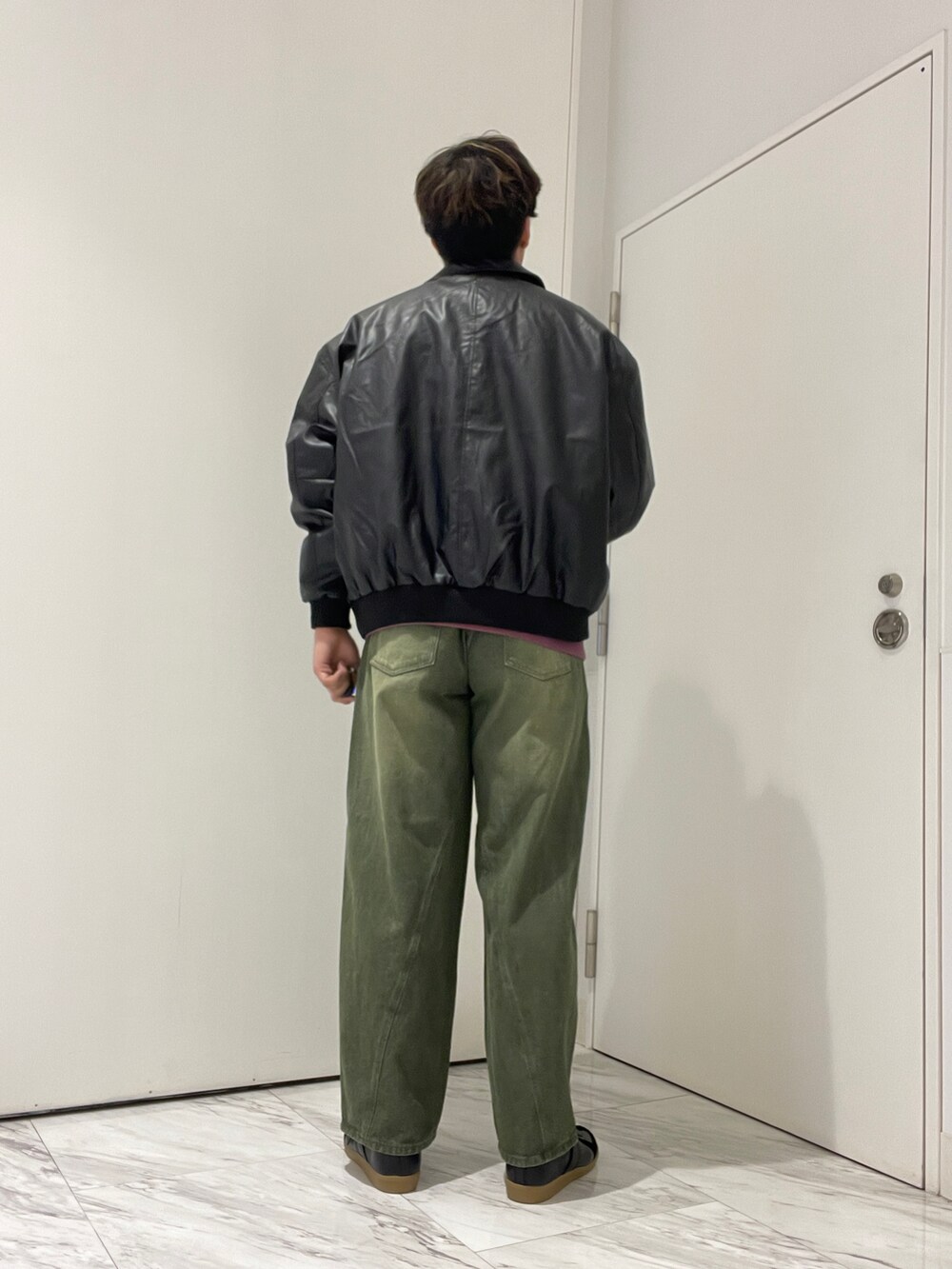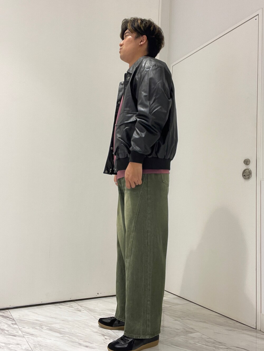 トレンドの短丈レザージャケットを用いたコーディネートです!