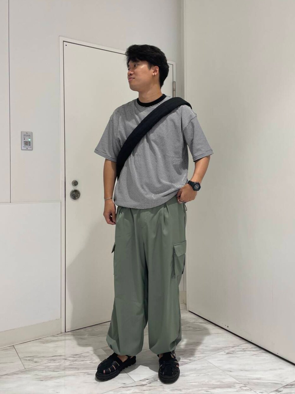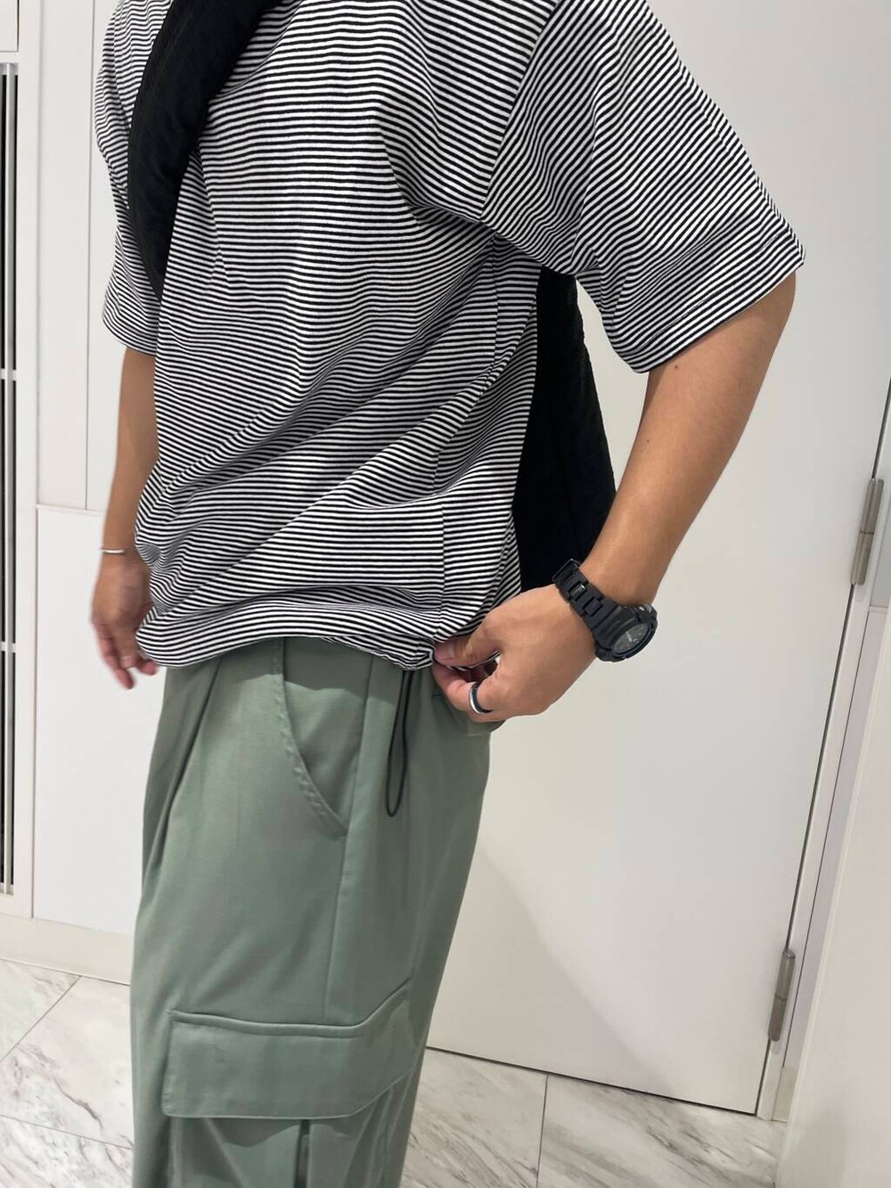 シンプルなTシャツですが、ドローコードでシルエットを変えられます!