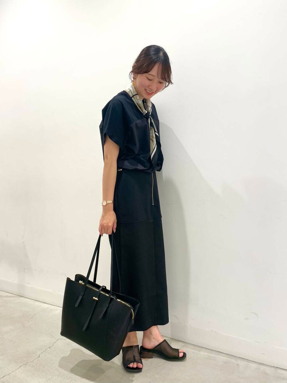 オフィスカジュアルにもぴったりなオールブラックコーデ!