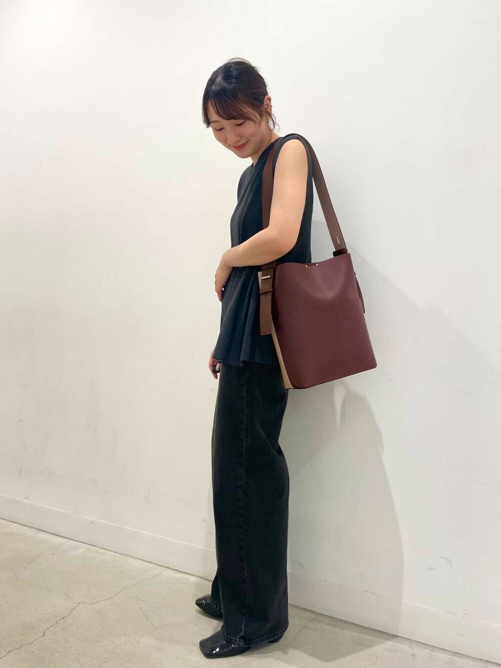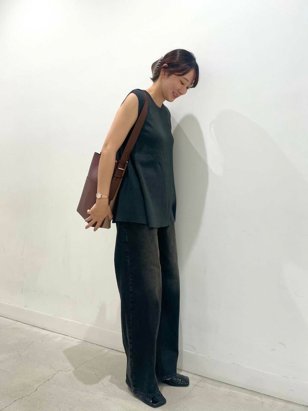 着用のセーターは裾がフレアになっているので女性らしい印象になります!