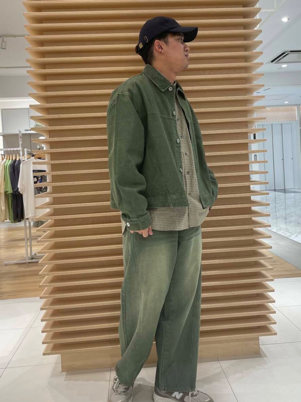 ジャケットはハイウエストのパンツと合わせると足が長く見えます!