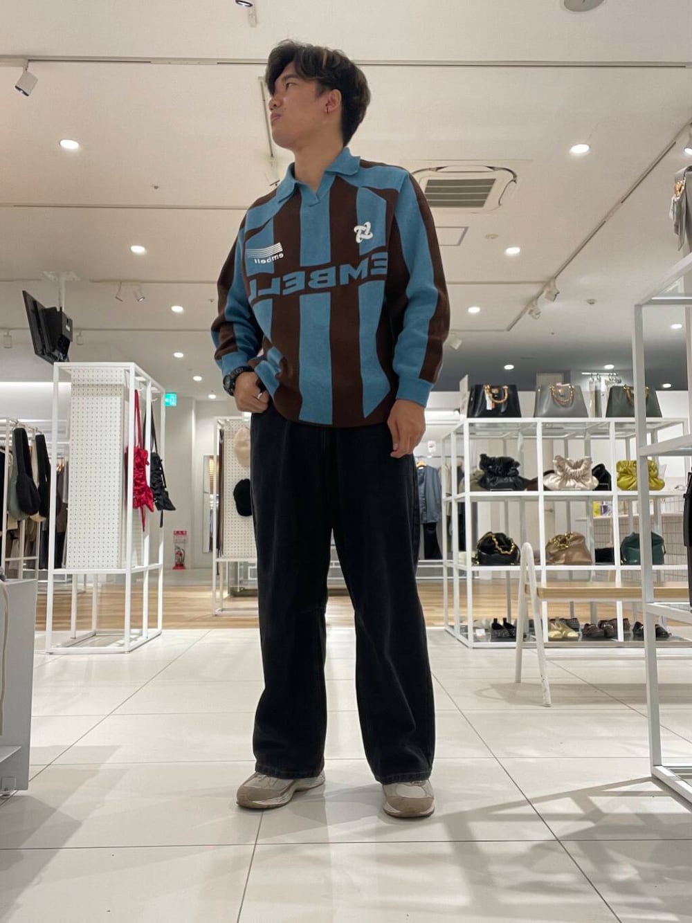 トレンドのゲームシャツライクなニットを用いたコーデです⚽️