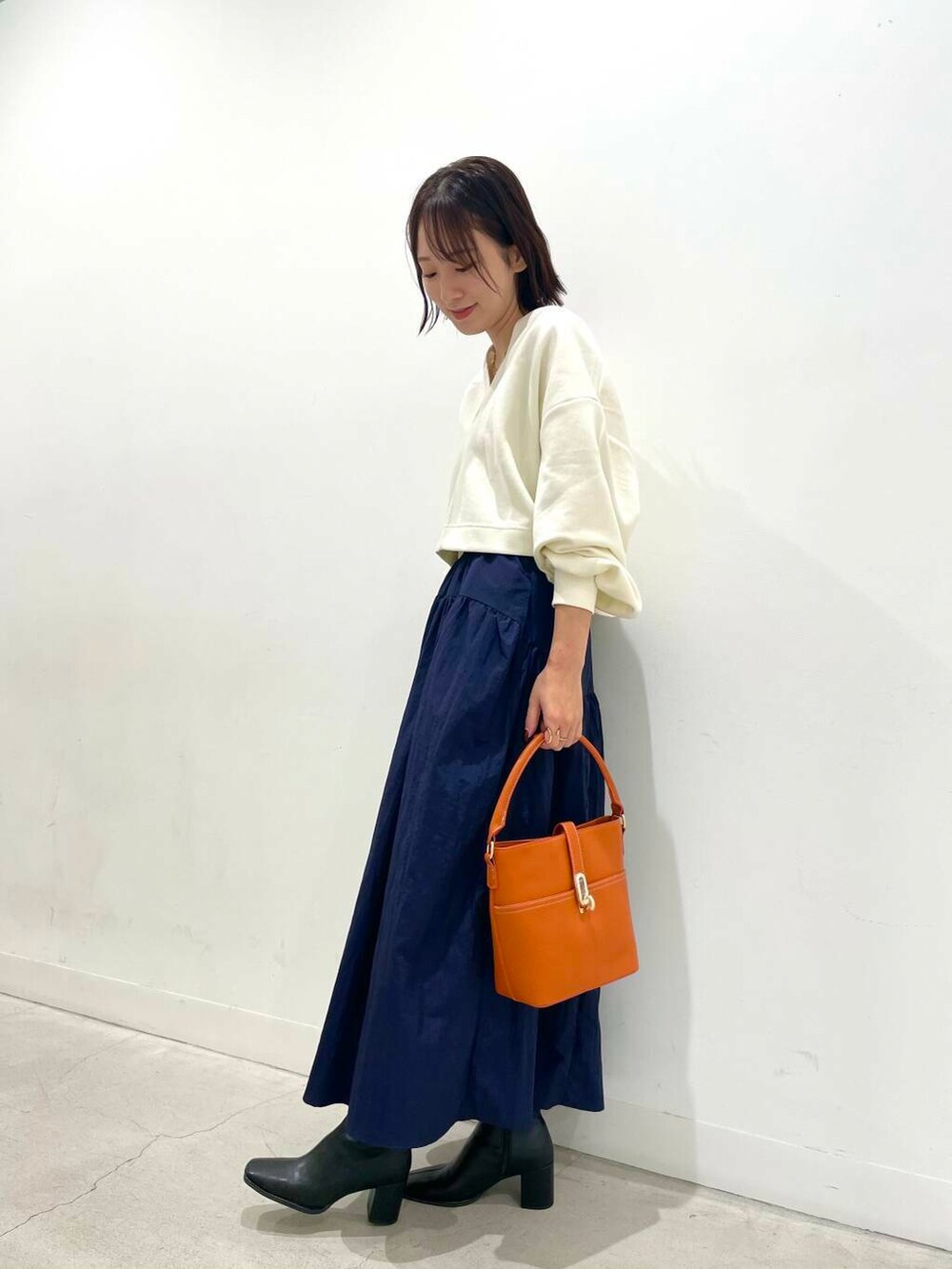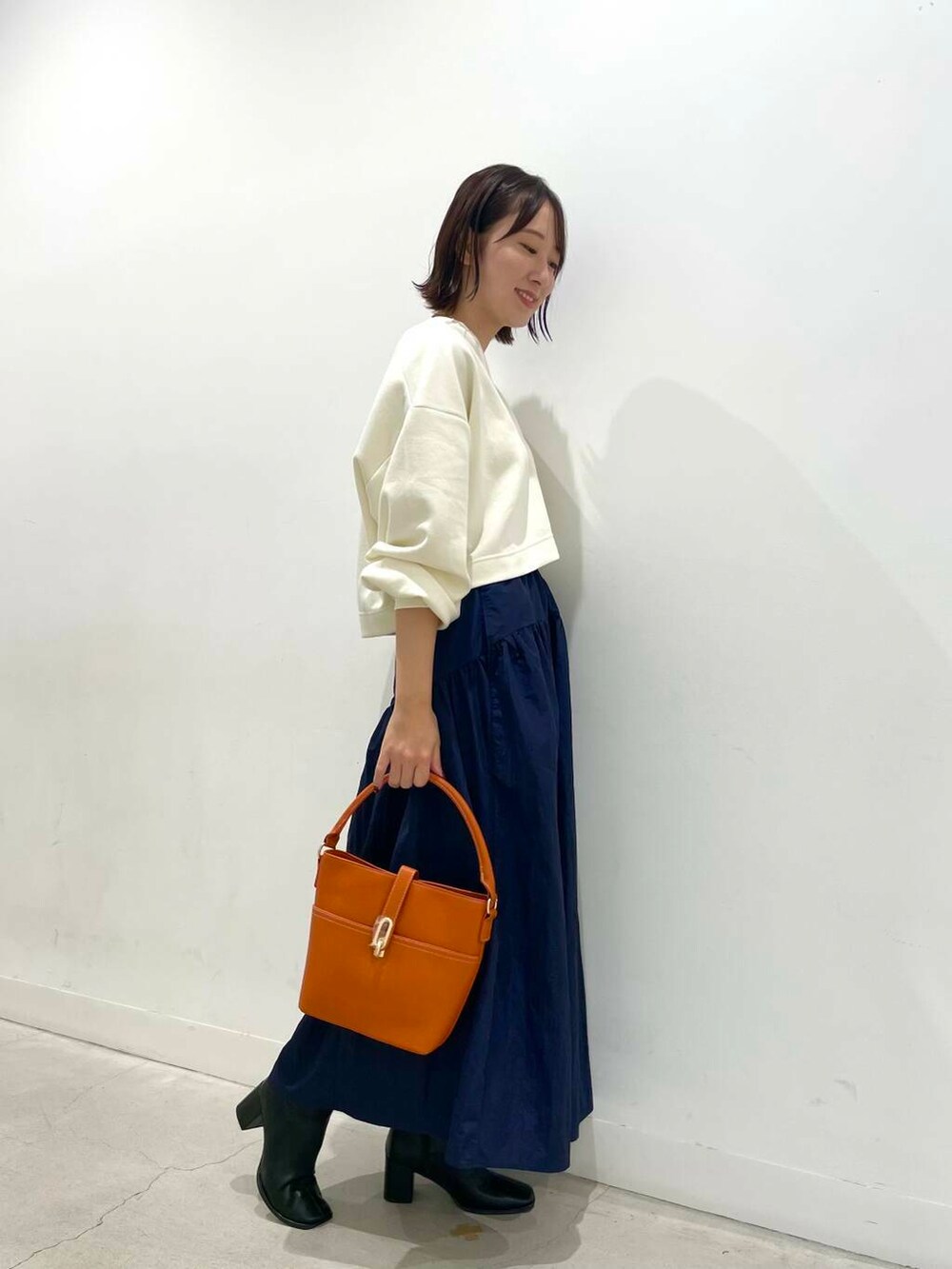 ボリュームのあるスカートにはクロップド丈のトップスを合わせるとバランス◎