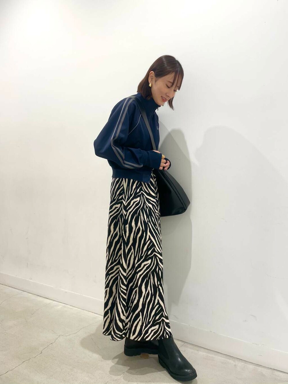 トラックジャケットにアニマル柄のスカートを合わせたちょっぴり個性的なコーデです🦓