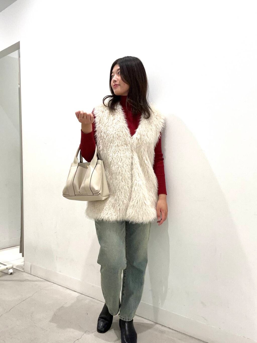 今からの季節にぴったりなファーベストを使ってカジュアルコーデを組みました!