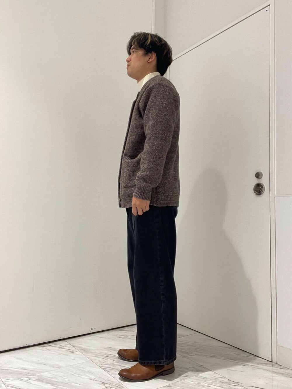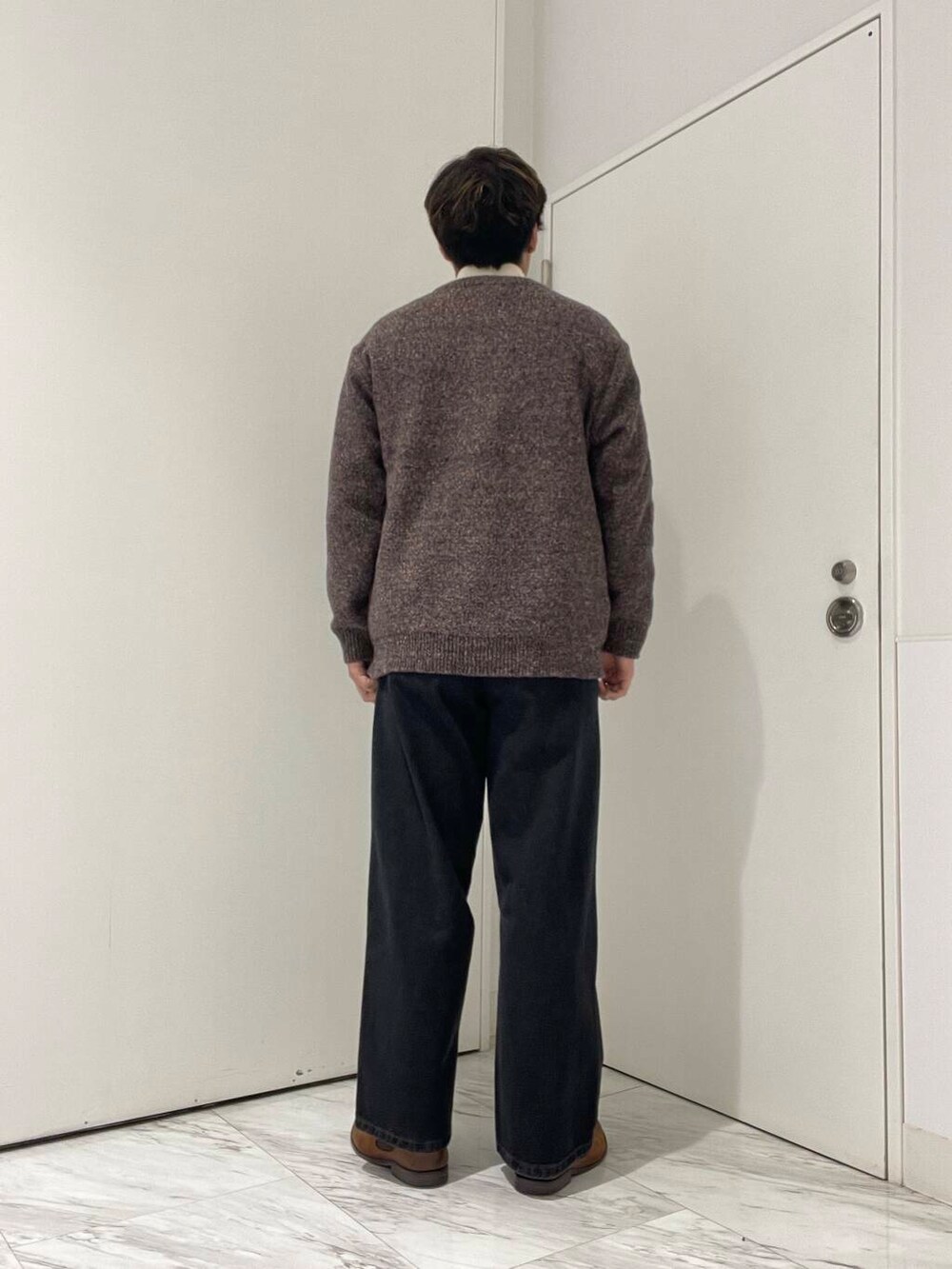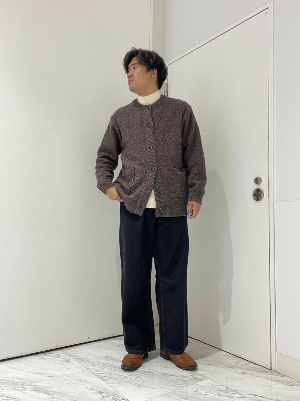しっかりした生地感のカーディガンを用いたコーディネートです!