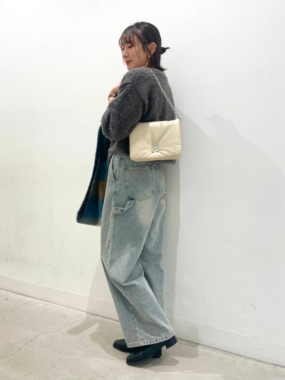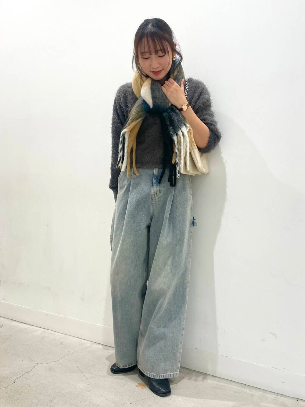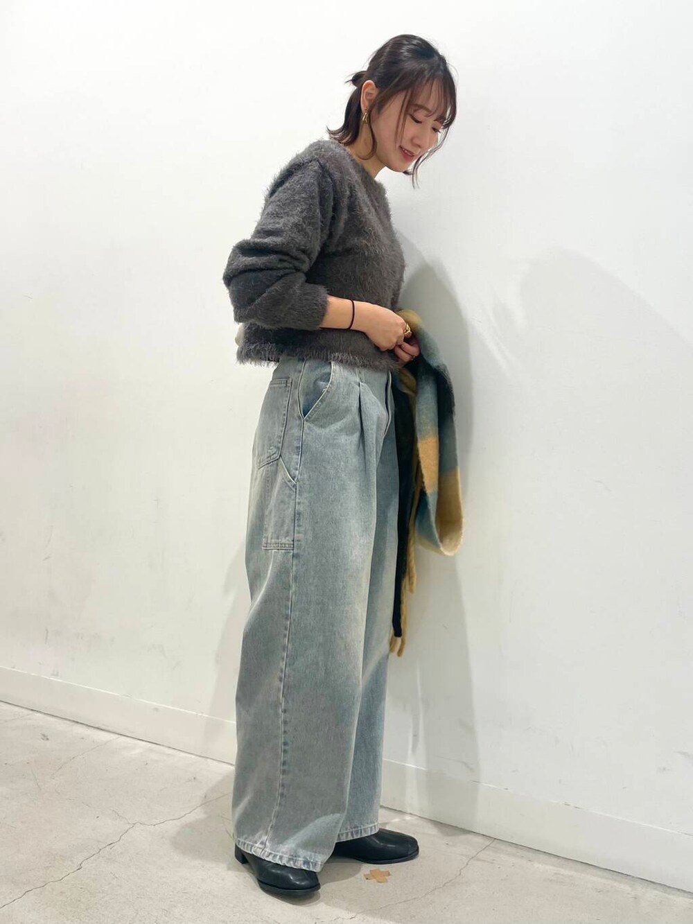 女性らしいシャギーセーターにデニムを合わせてカジュアルダウンしました🧵