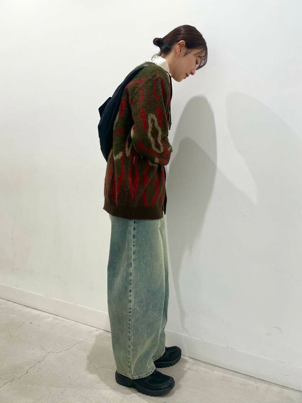個性的なデザインのカーディガンは落ち着いたカラーなので使いやすさ◎