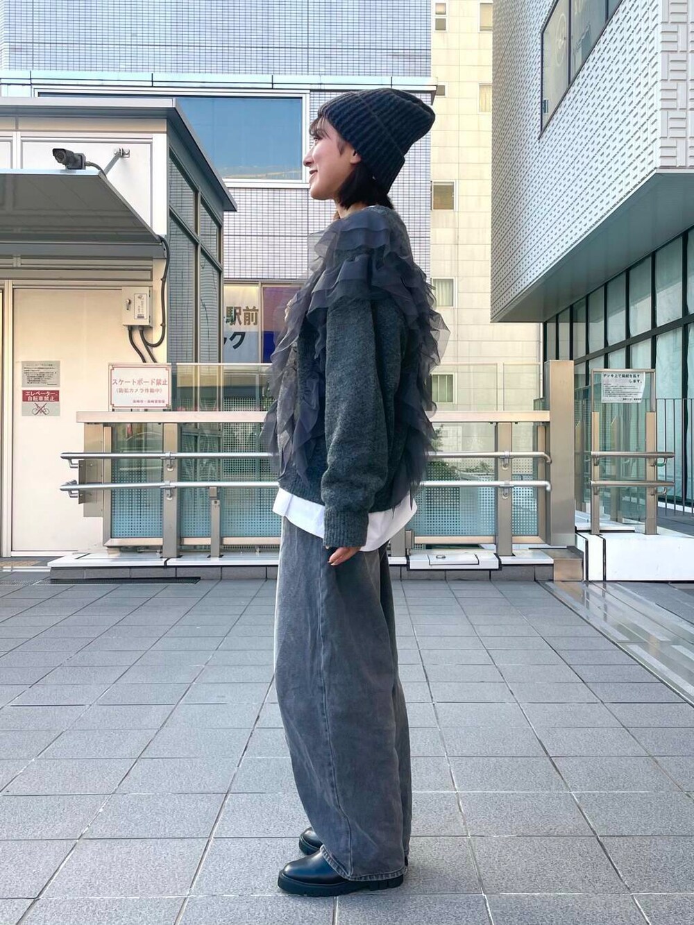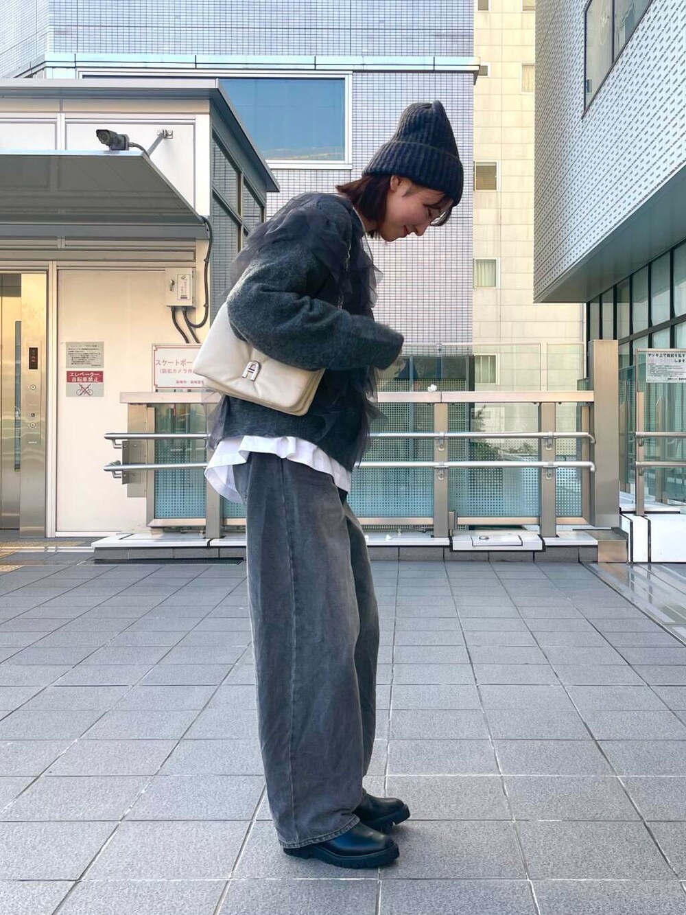 全身グレーでまとめましたが、白Tをレイヤードして単調すぎないコーディネートにしました🤍