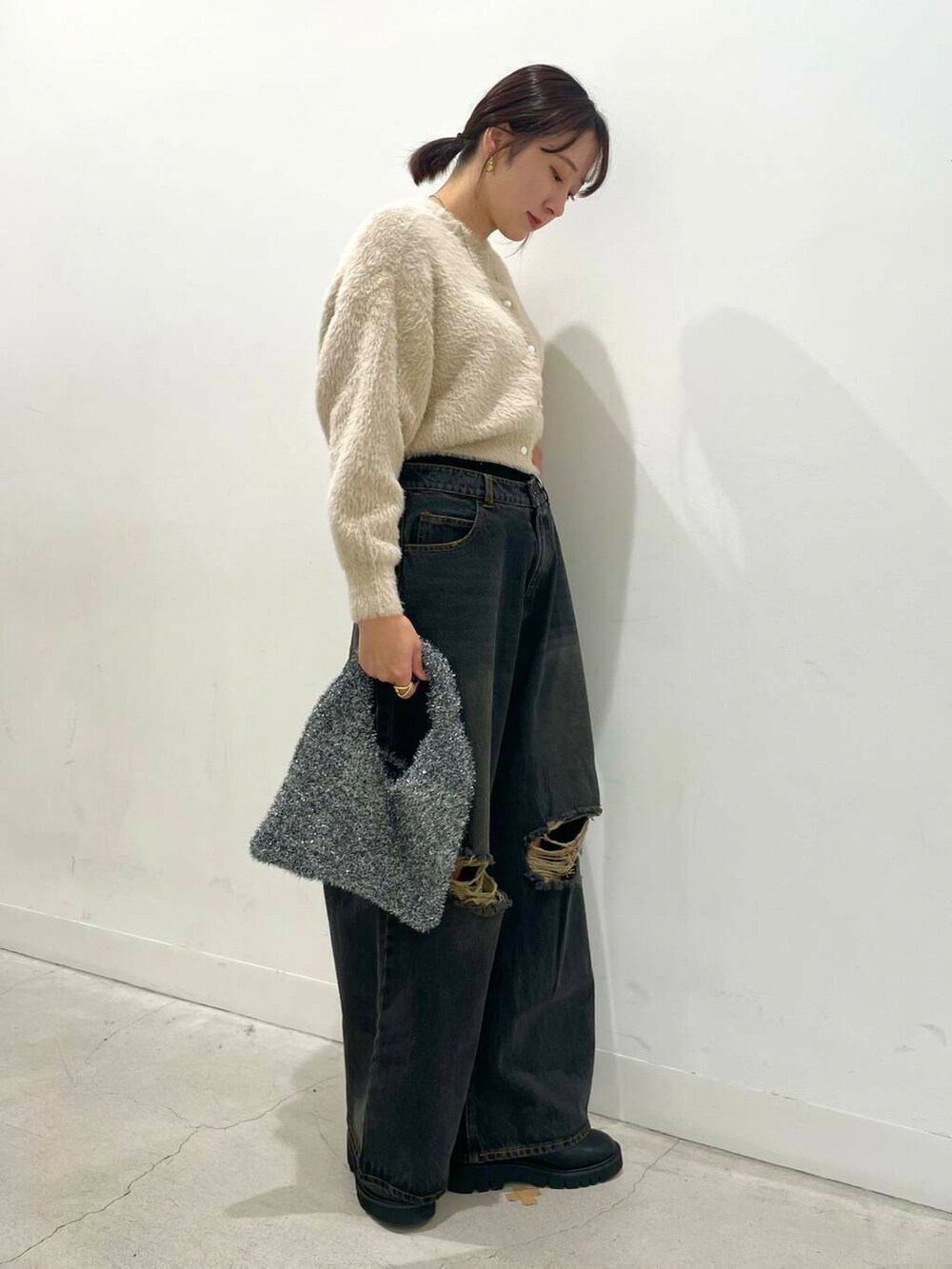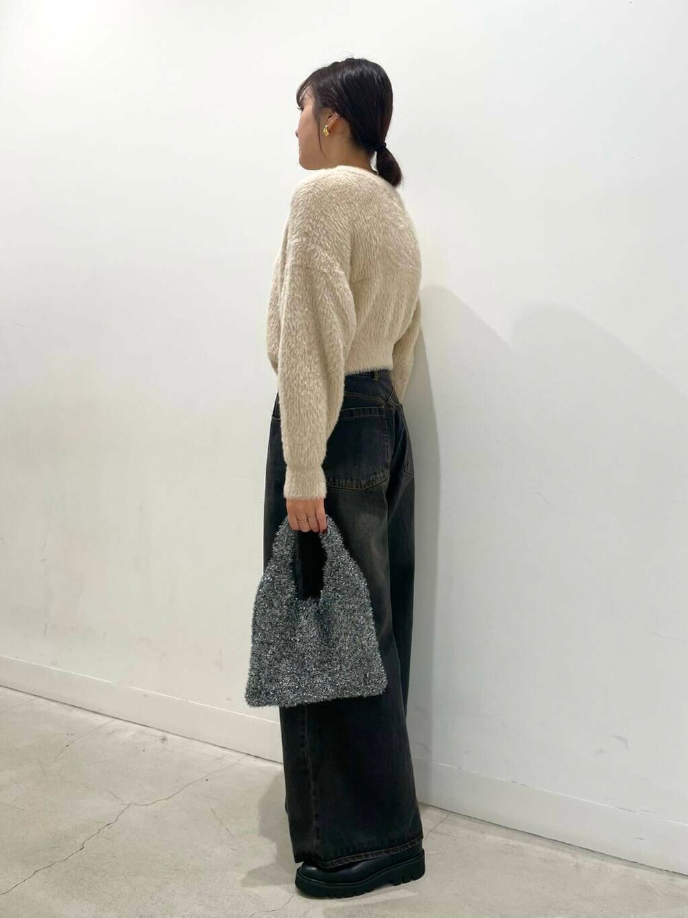 カーディガンは毛足短めのシャギーとラメが女性らしくて可愛い♡