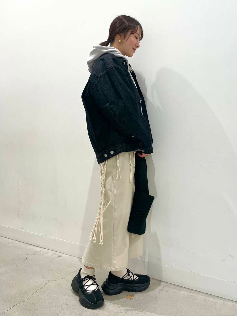 パーカーはルーズなシルエットとハリのある素材でカジュアルすぎず、上品に見えます✨
