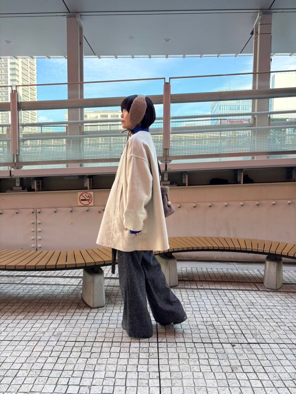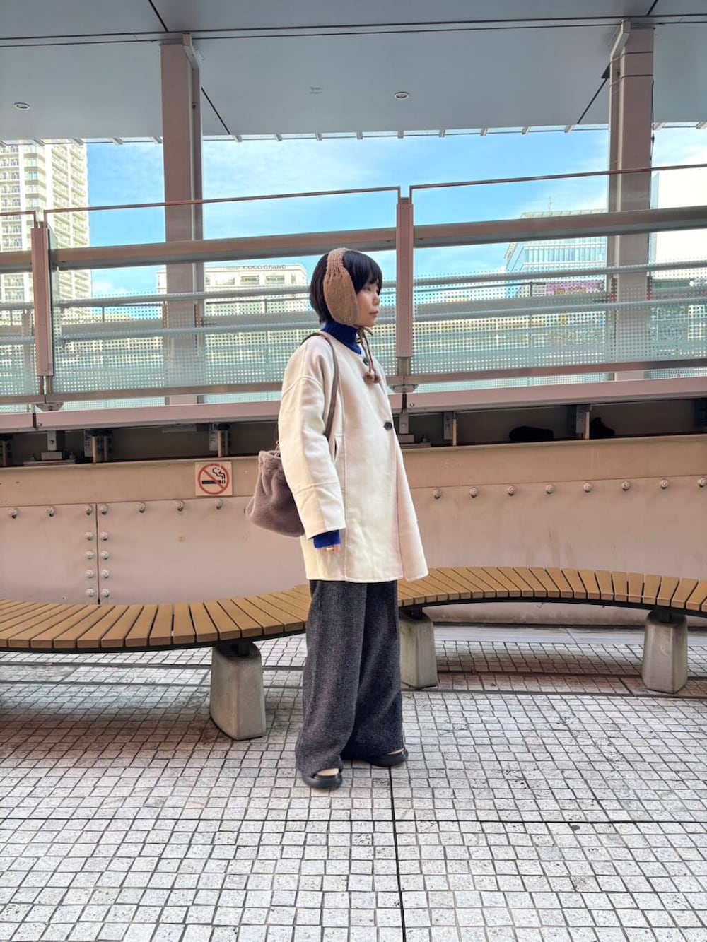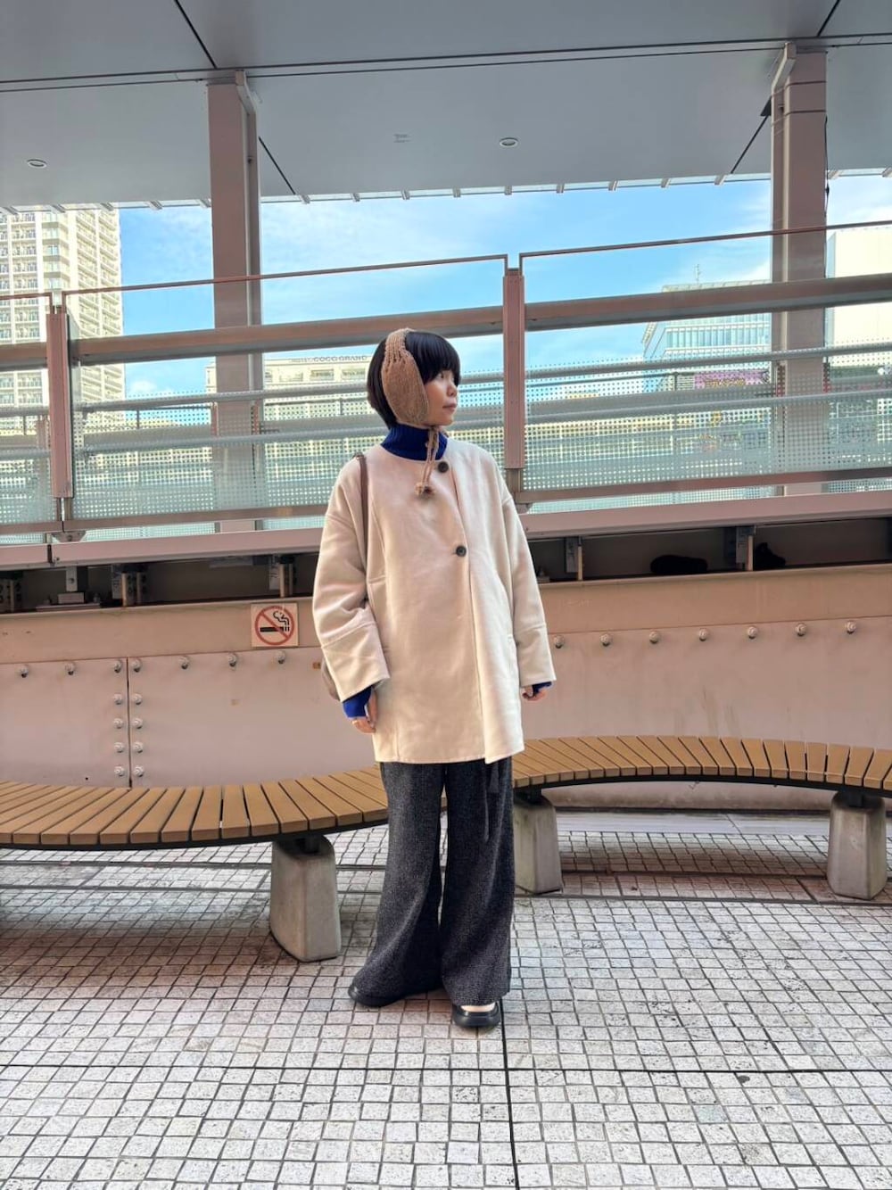 サムホールニットなので、親指を通して手袋のようにも着られます。コートの端から、差し色としてチラッと見えると、かわいいですよね!