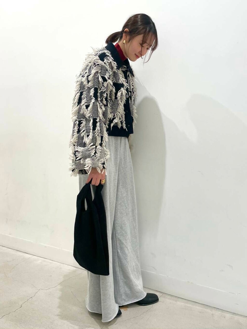 毎年大人気のリブハイネックセーターをレイヤードして、モノトーンコーデの差し色にしてみました🙆🏻♀️🍎