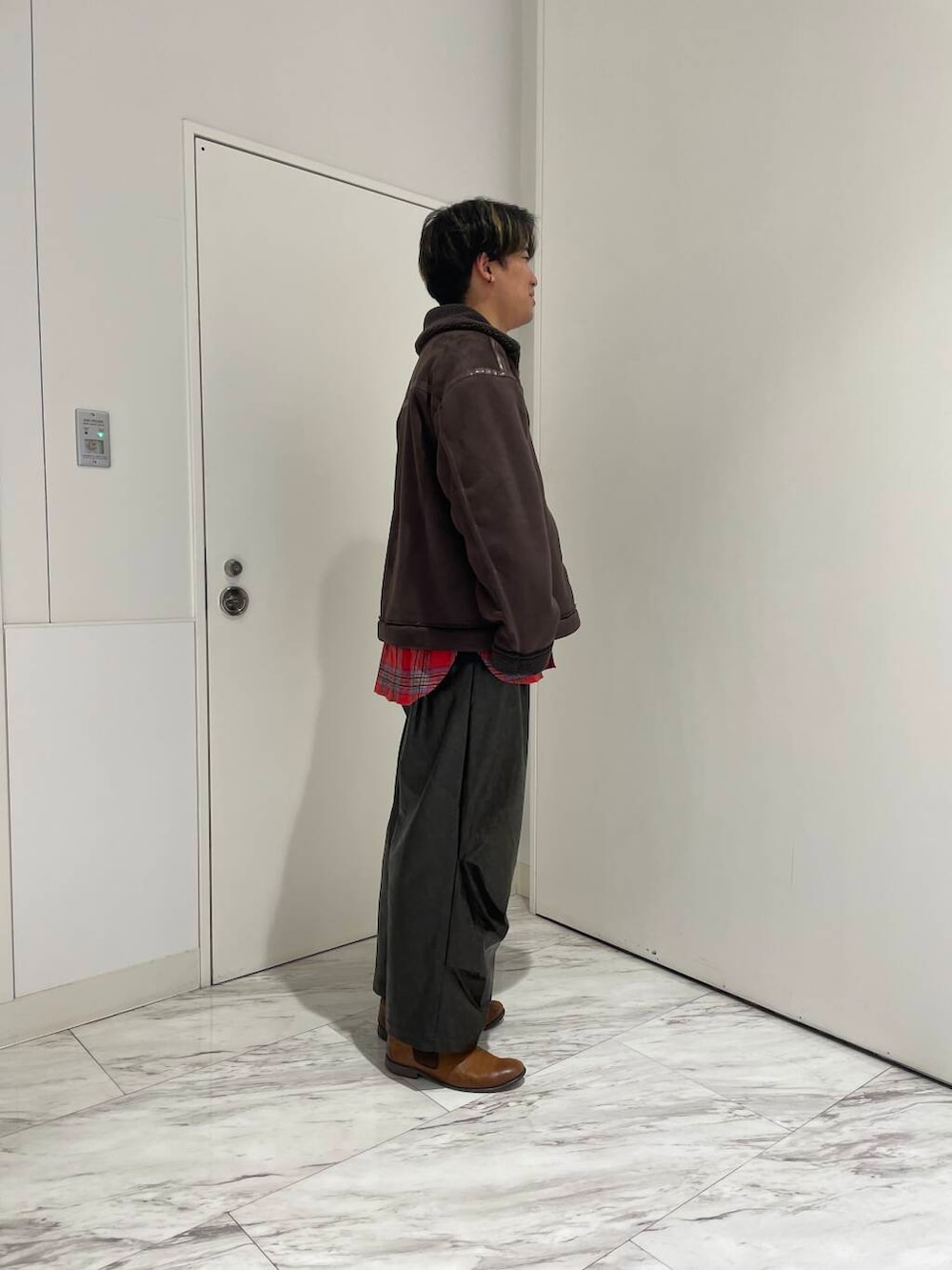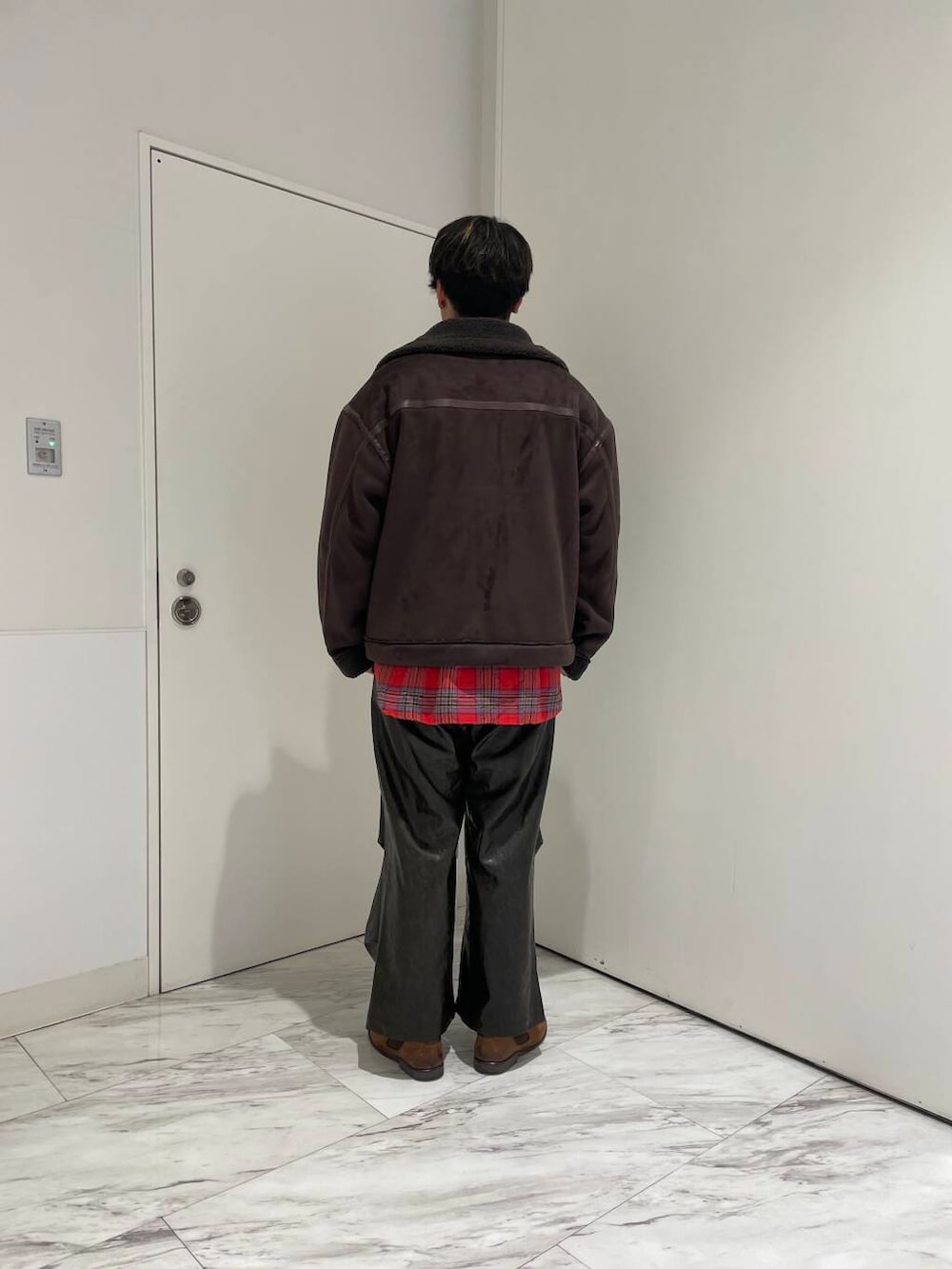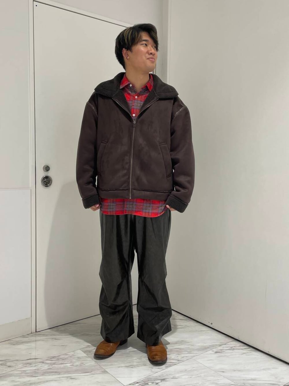 去年も流行っていたムートンジャケットに冬をイメージしたチェックシャツを着用してます!!