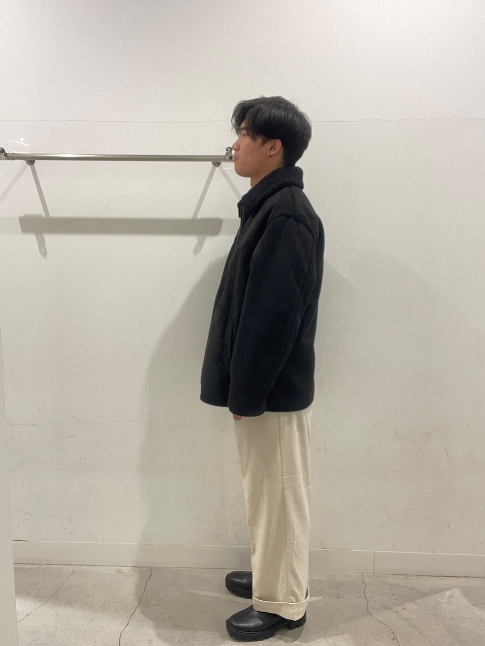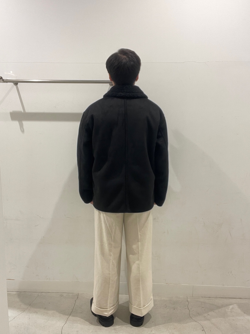黒のボアブルゾンに白のワイドパンツを合わせて、メリハリのあるシルエットに⬛️×⬜️