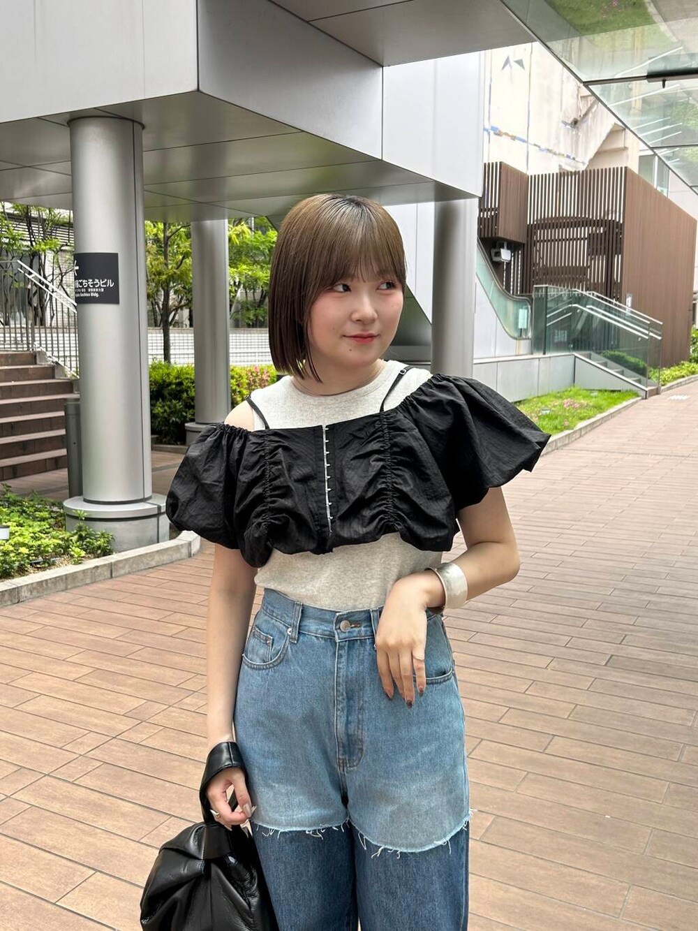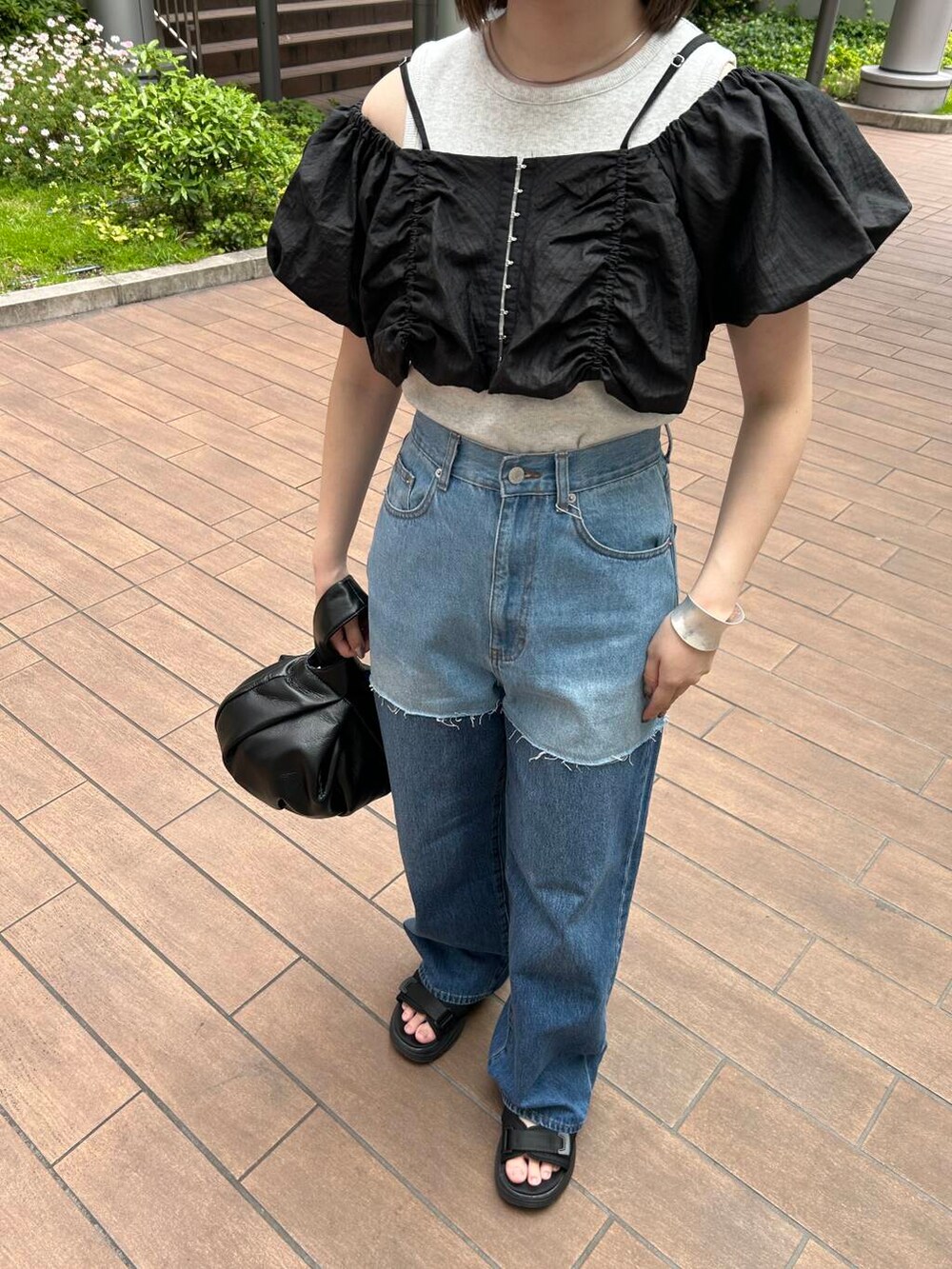 デニムは36のサイズを履いてちょっと裾が溜まるようなシルエットなります!(153cm)