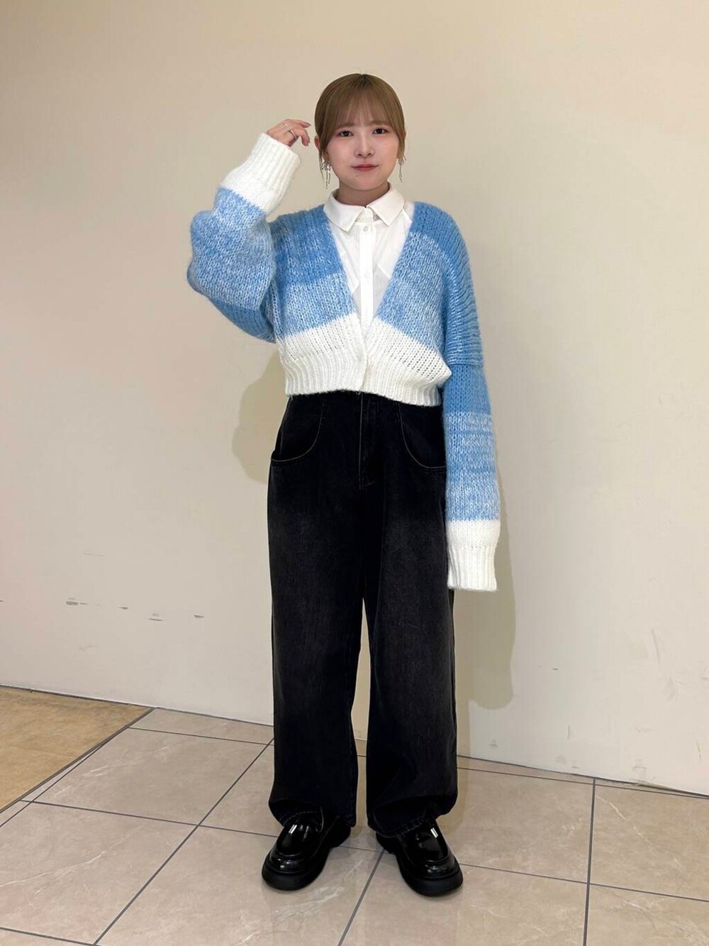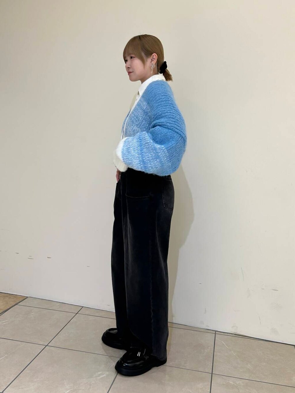 ショート丈でハイウエストのボトムとの相性もバッチリです👌