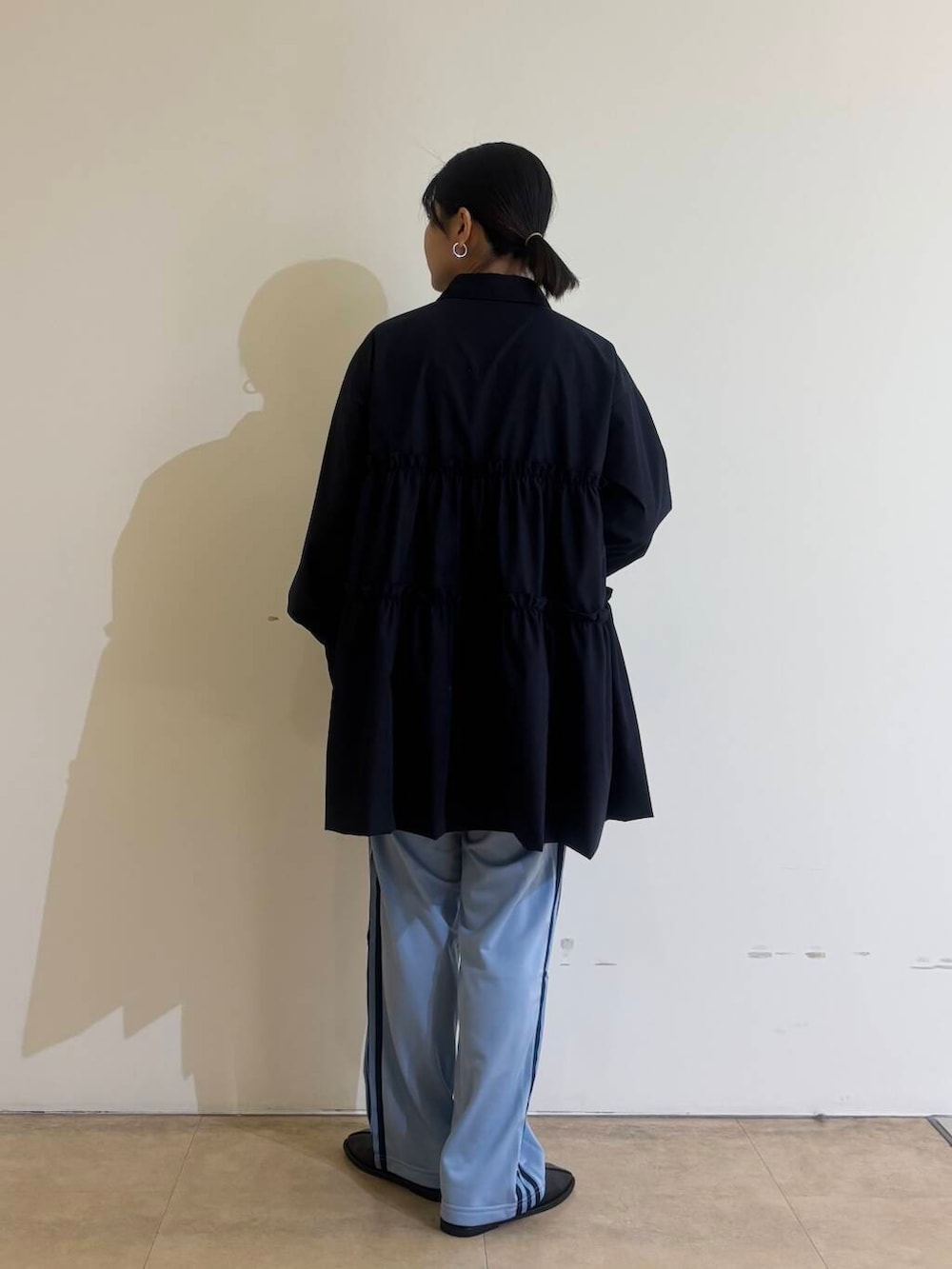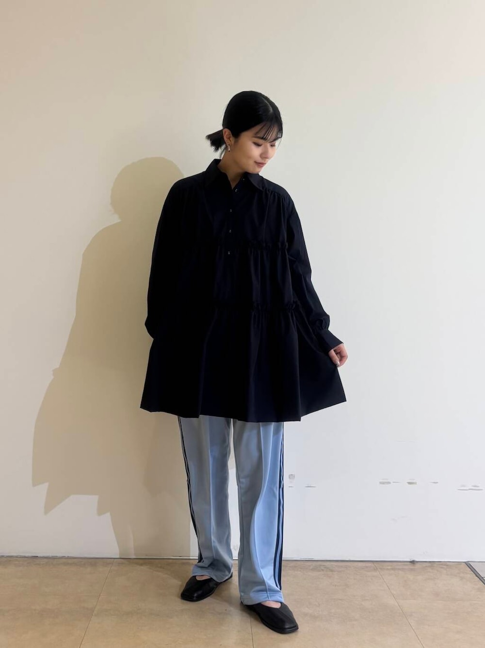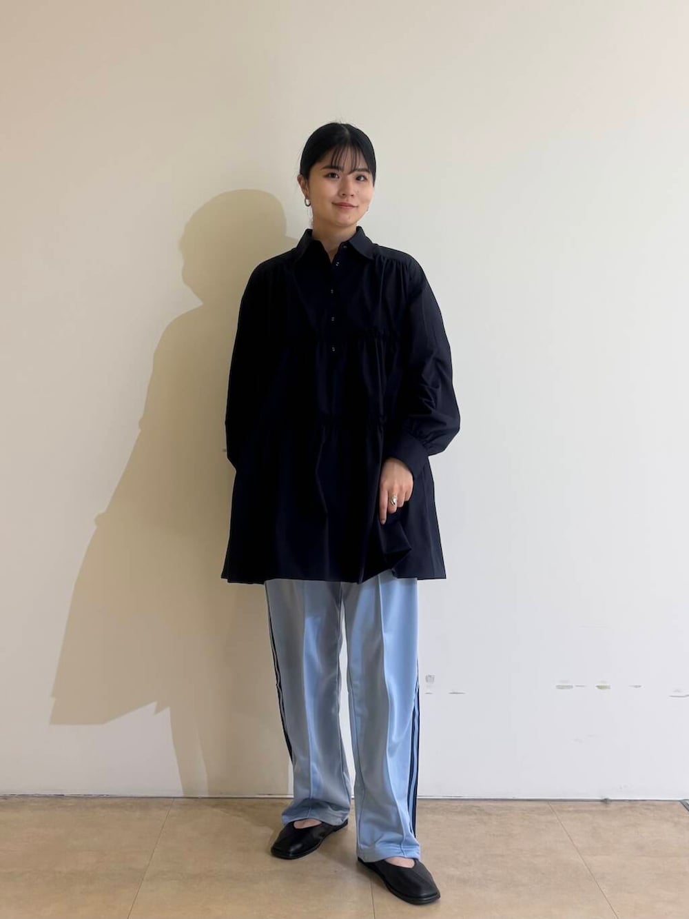 デザインが可愛いミニワンピですが甘くなりすぎないようトラックパンツと合わせ、足元はキレイめのバレエシューズにしましたあ☻