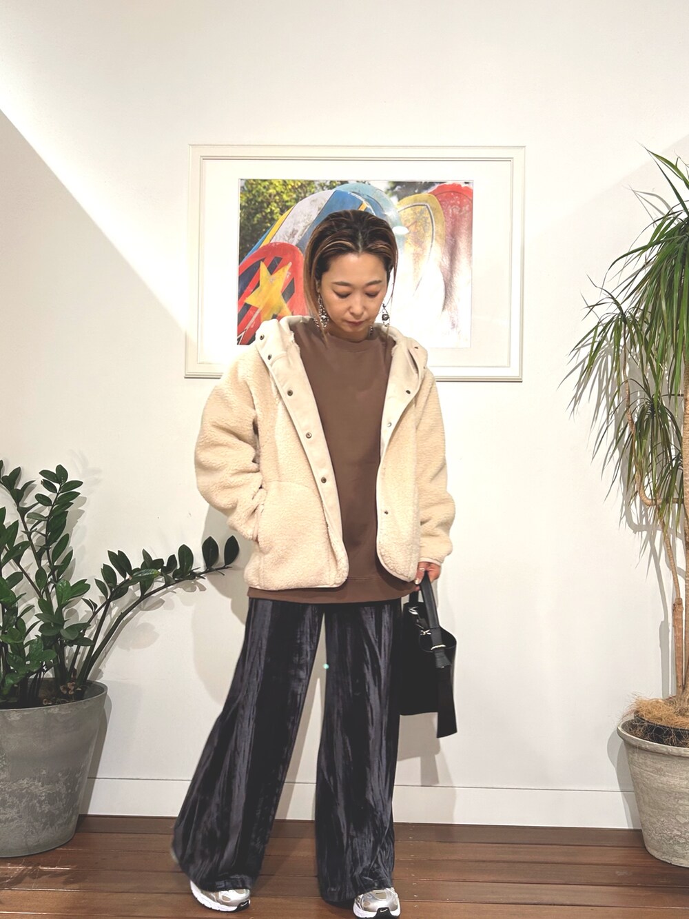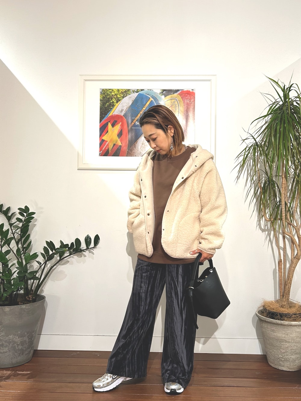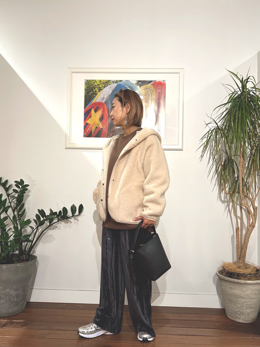 スウェットに、ベロアパンツは楽なのに麗めにまとまるのでオススメです!