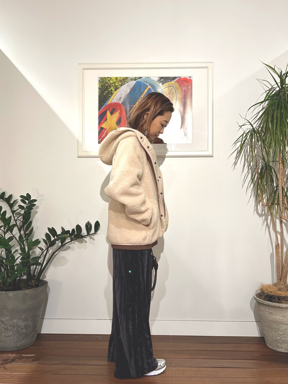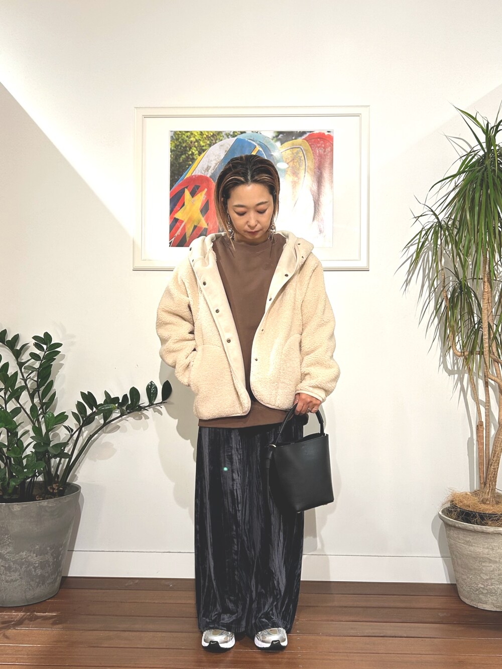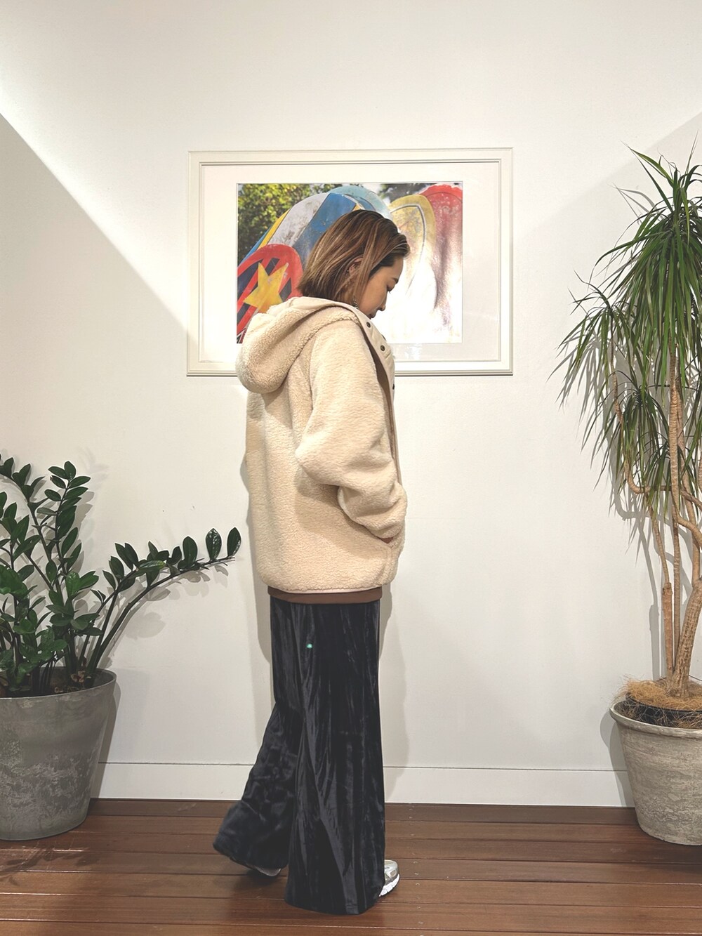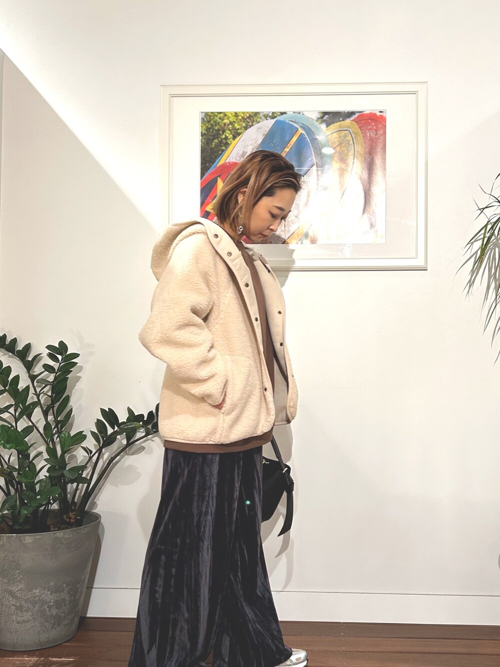スウェットに、ベロアパンツは楽なのに麗めにまとまるのでオススメです!
