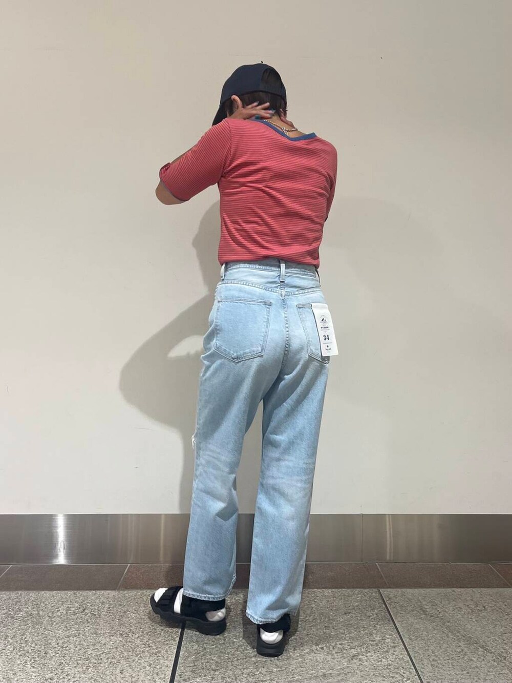 サイズはフリーサイズですが、ピタっとした感じでもなくかといって大き過ぎない感じが、デニムにINして着るのにほどよいサイズ感。
