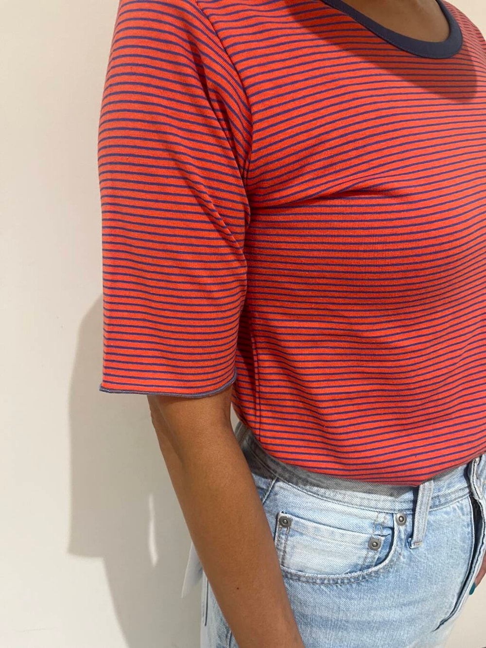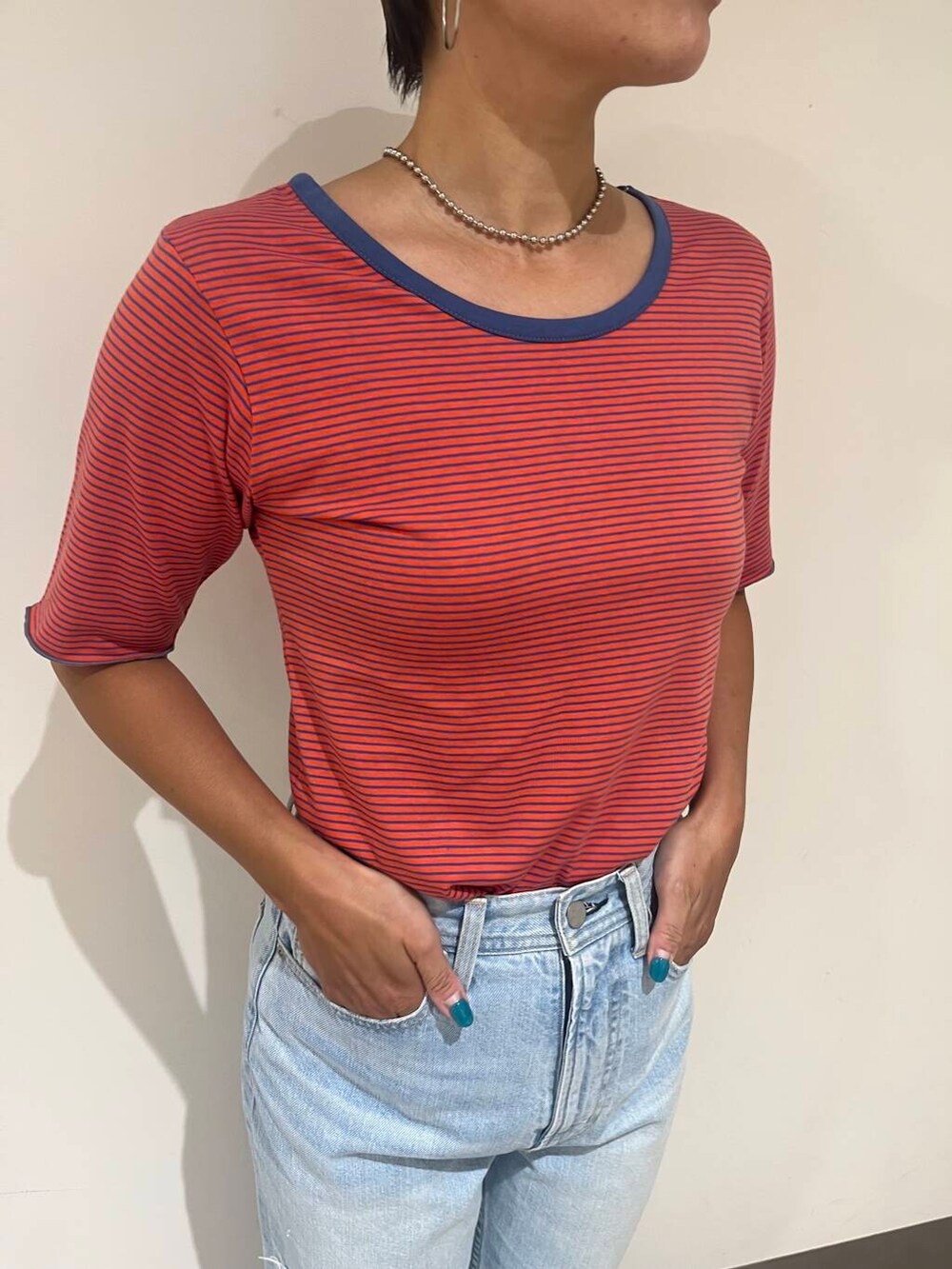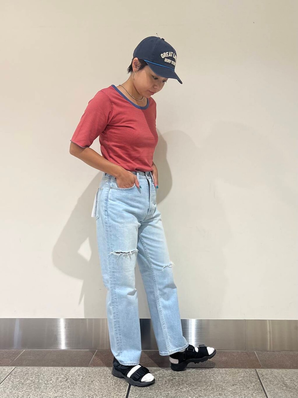 また、フリーサイズですが、ピタっとせずかといってダボっとしてる形じゃないので、デニムにINして着用頂くのに程よいサイズ感です。
