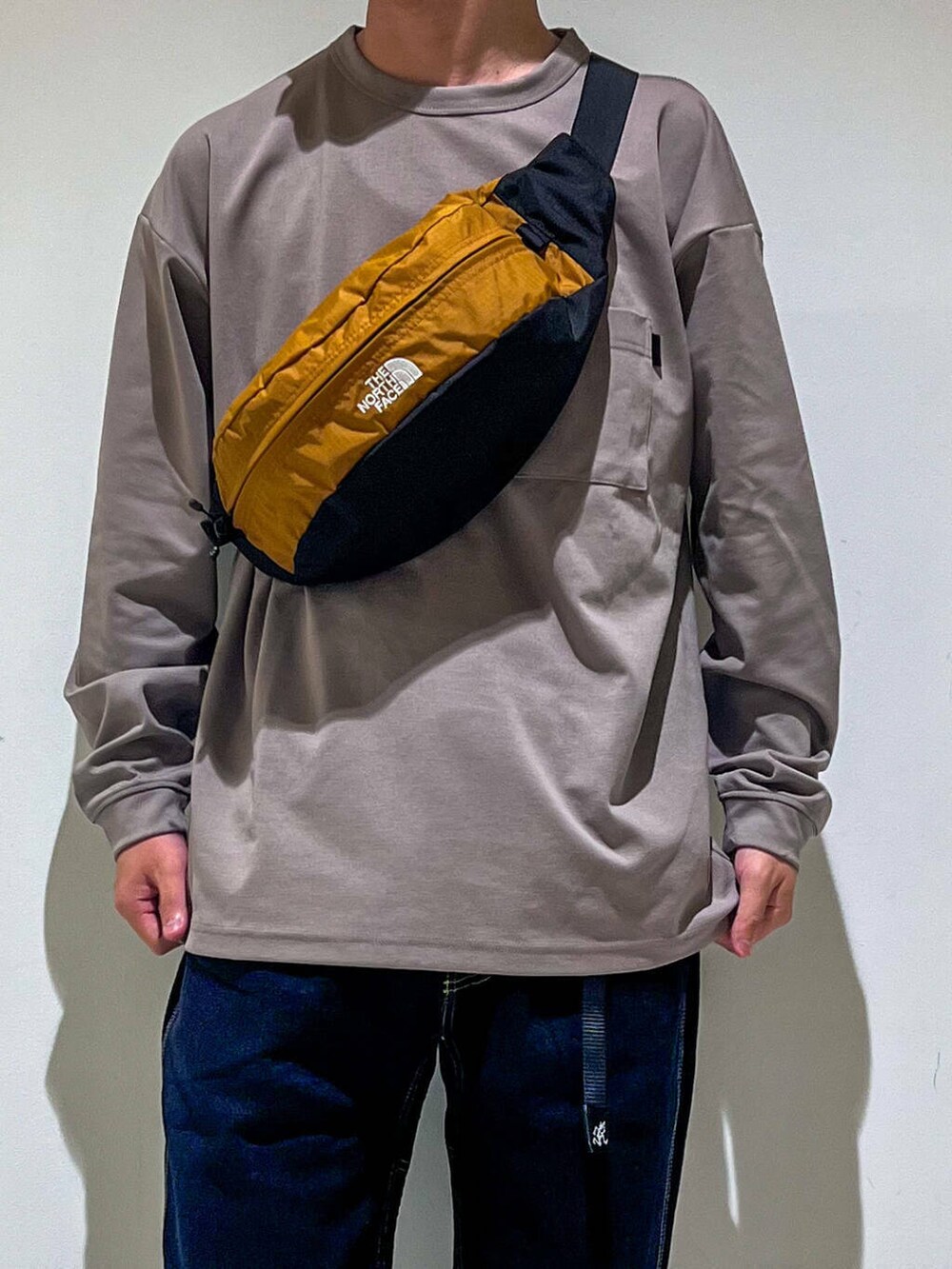 アクセントで秋らしいカラーのバッグも合わせてます。