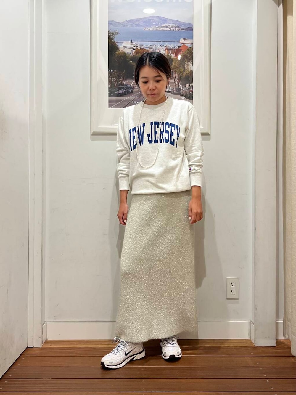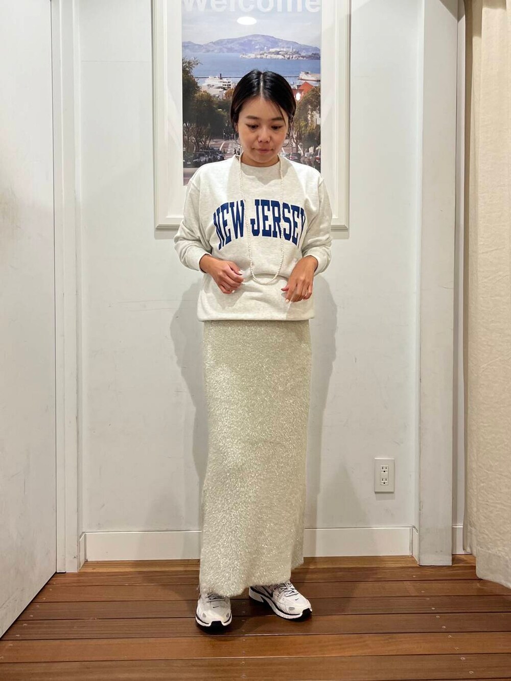 着用のスウェットは、ワンサイズ展開ですが、大きすぎずコンパクトすぎず、スカートにもボトム