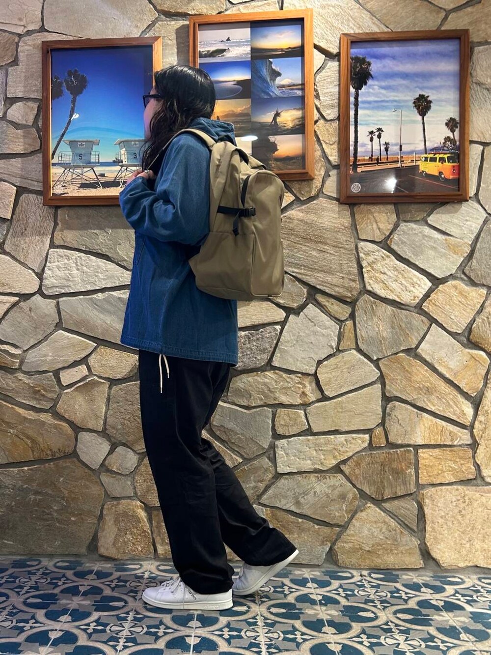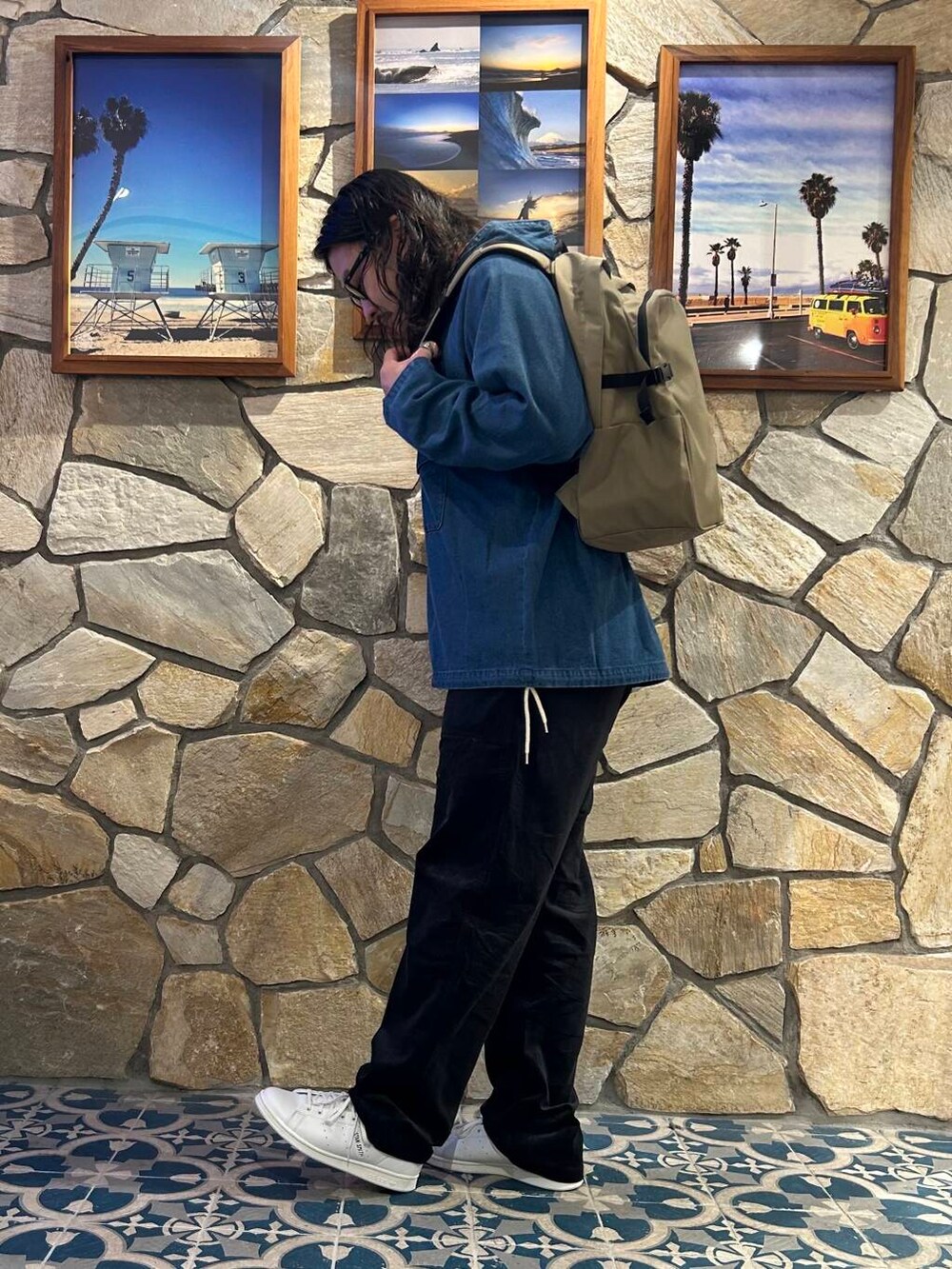 素材感は柔らかく、着用しやすいデニム素材です。ストレッチ性はないですが、首元のジップで着脱は楽ちんです◎
