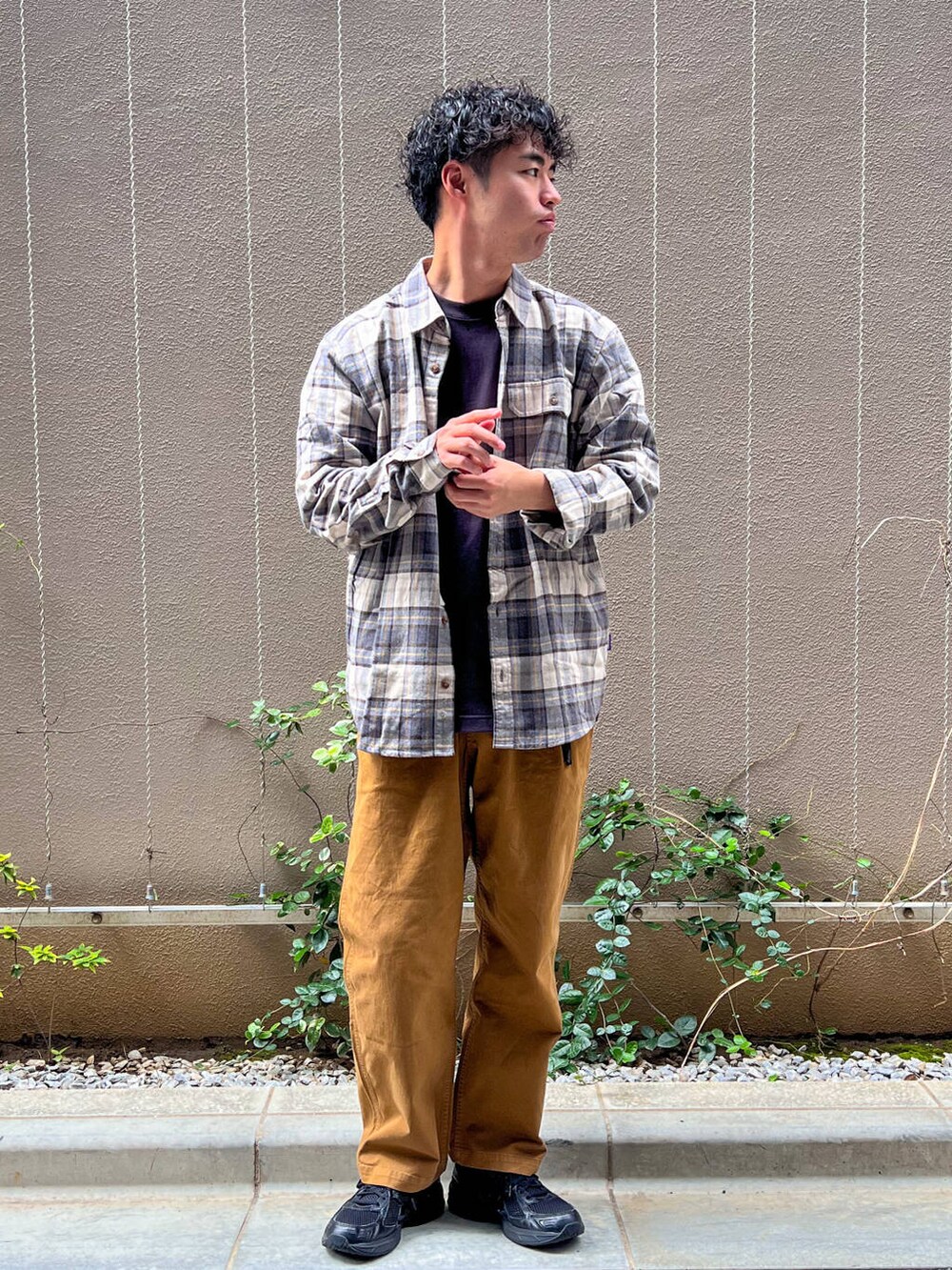 patagoniaフランネルシャツとEKAL別注のgramicciでカジュアルなアイテムで合わせてみました。