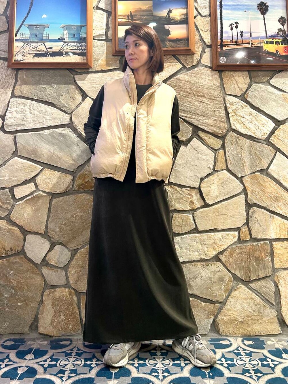 私の身長で足首が隠れる丈感、袖も長めです!