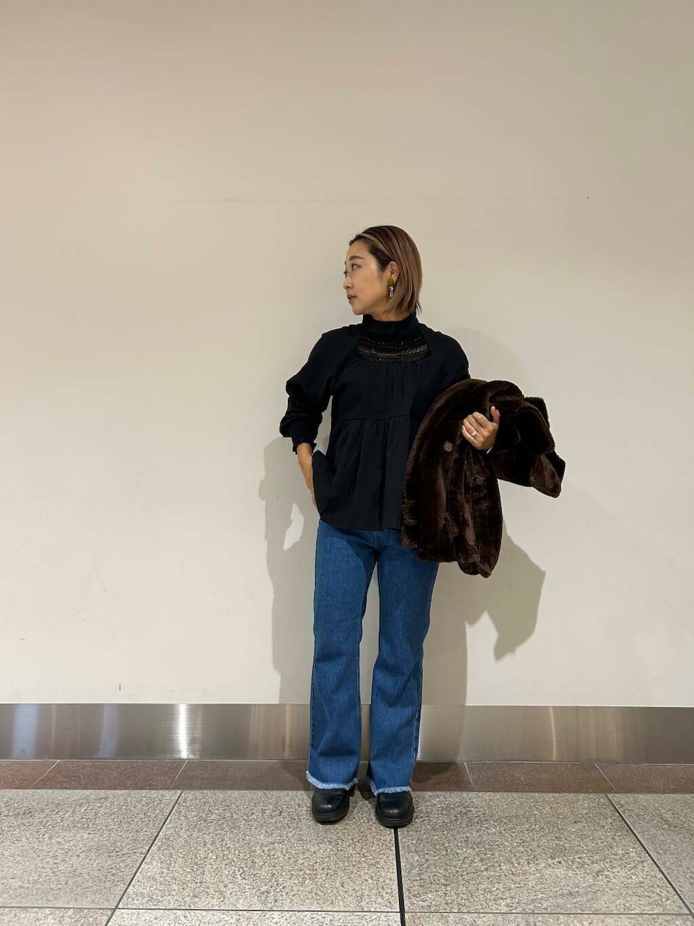 ブーツカットのデニムは低身長でも脚長効果抜群です。