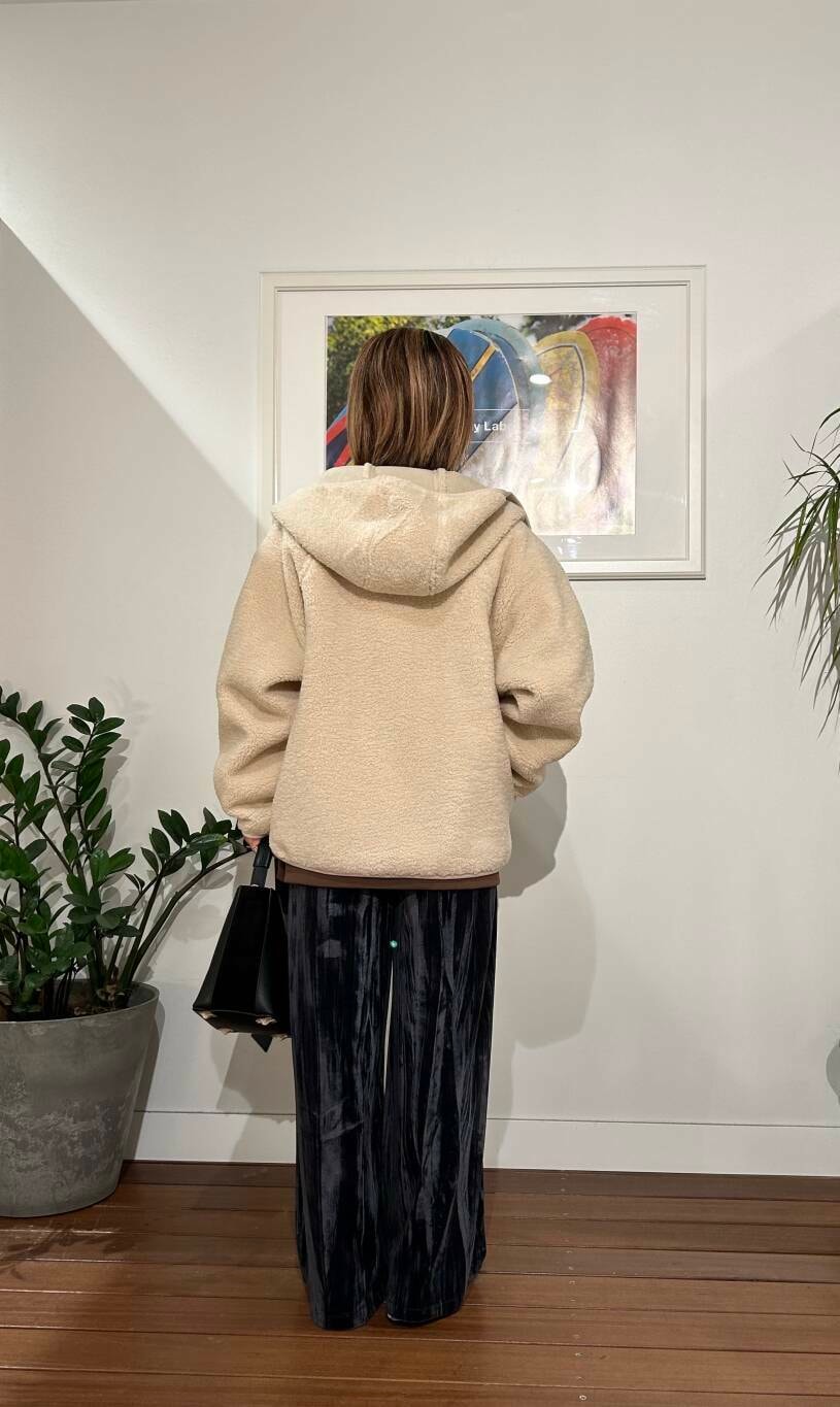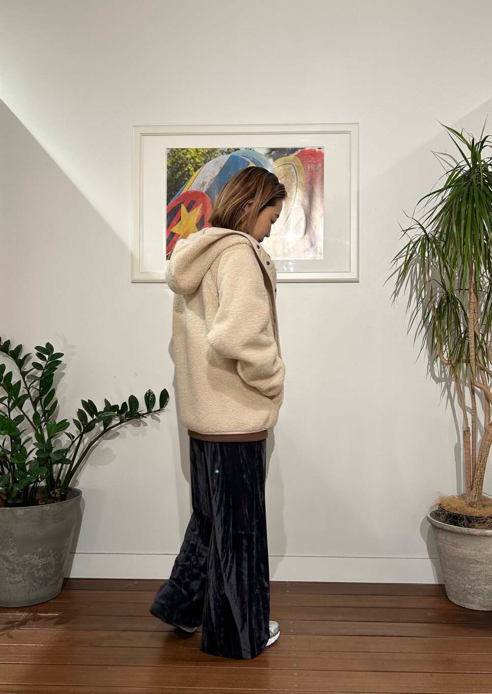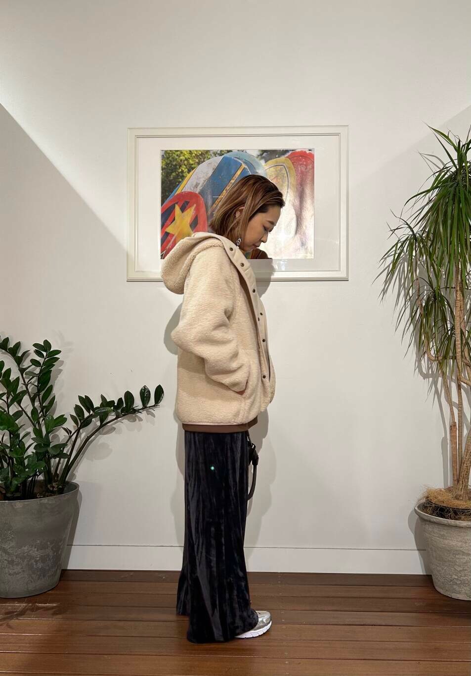 スウェットに、ベロアパンツは楽なのに綺麗めにまとまるのでオススメです!