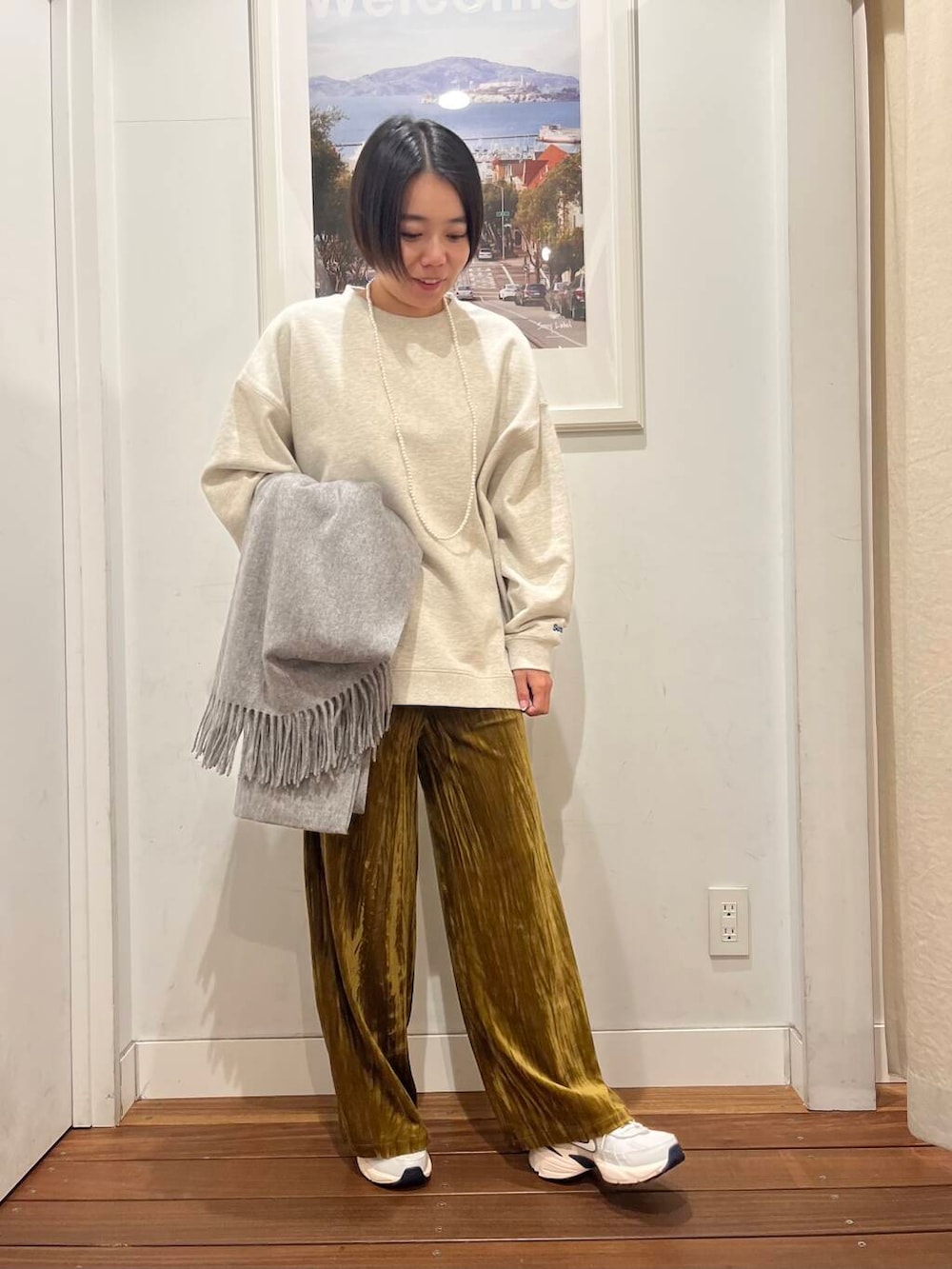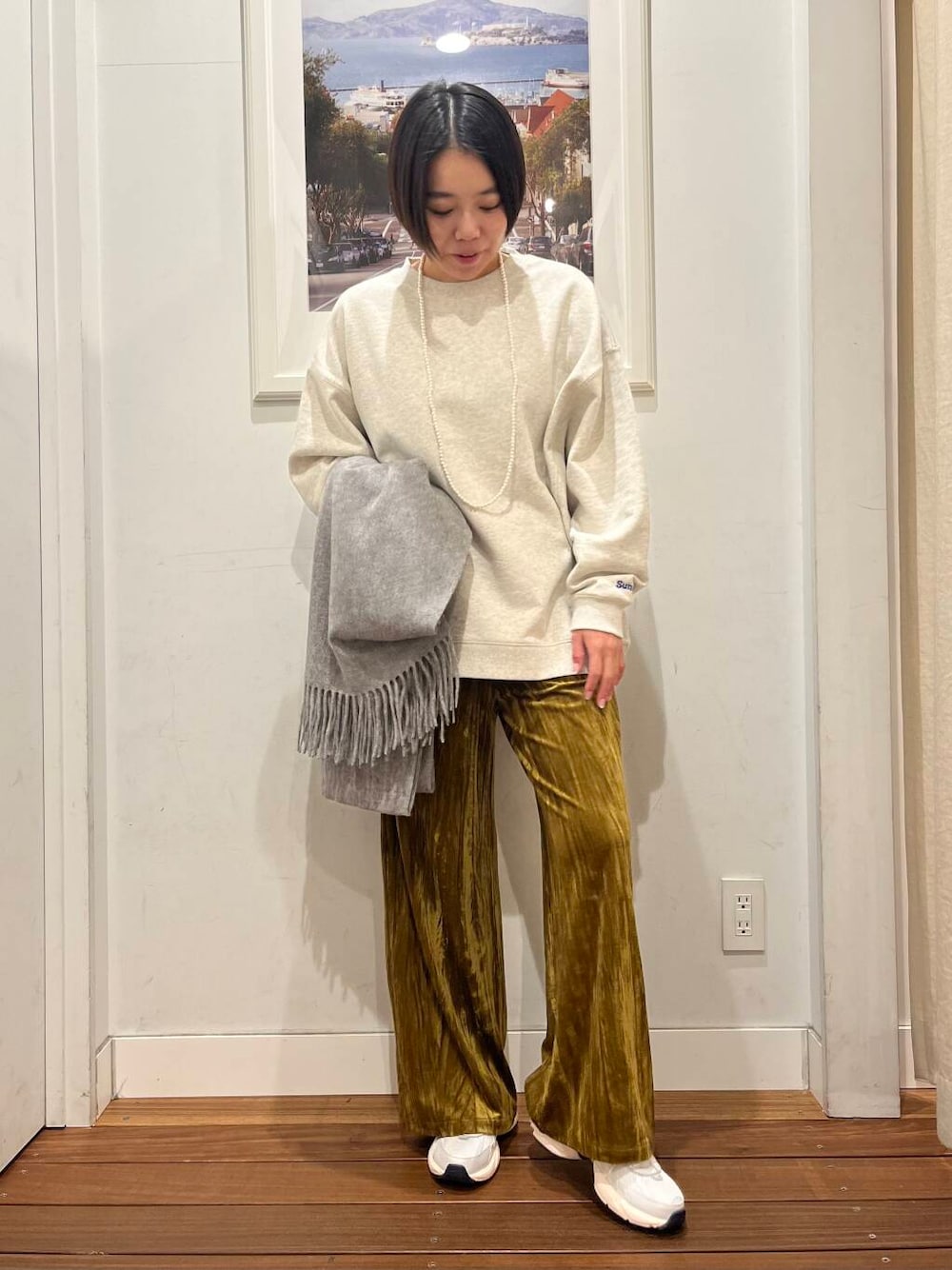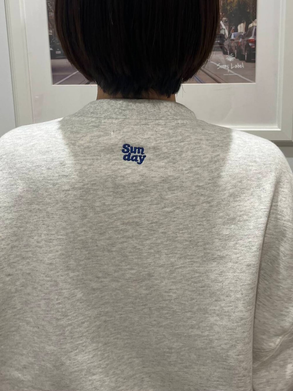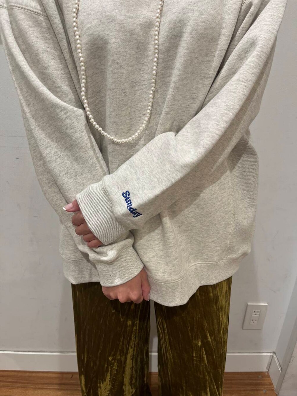 着用のオーバースウェットは、なんといってもsundayのロゴがポイントで、さりげない感じがかわいいですよね!