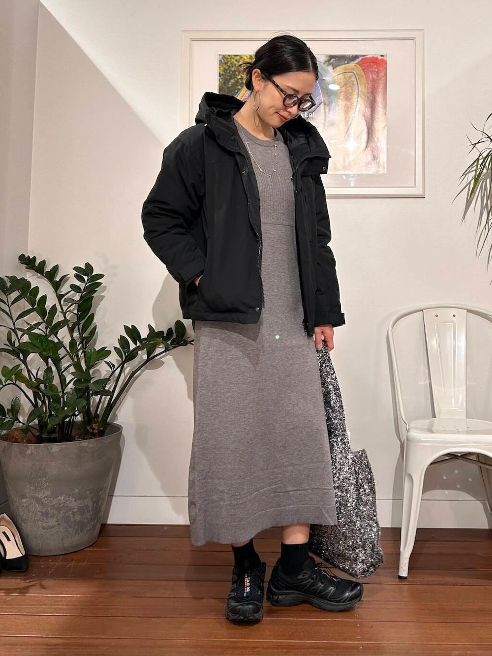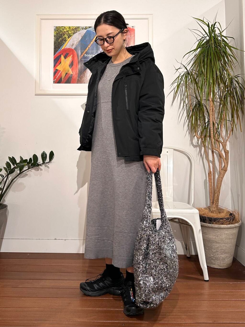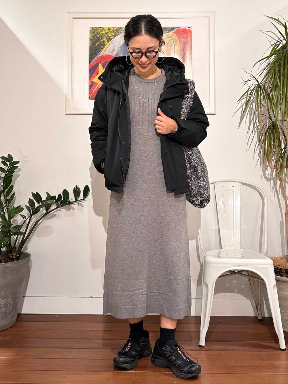 ニットワンピースはボディラインを拾わないゆるっとしたシルエット。丈感のは164センチだと少し短めなので、レギンスやデニムをレイヤーしても良いかと思います。