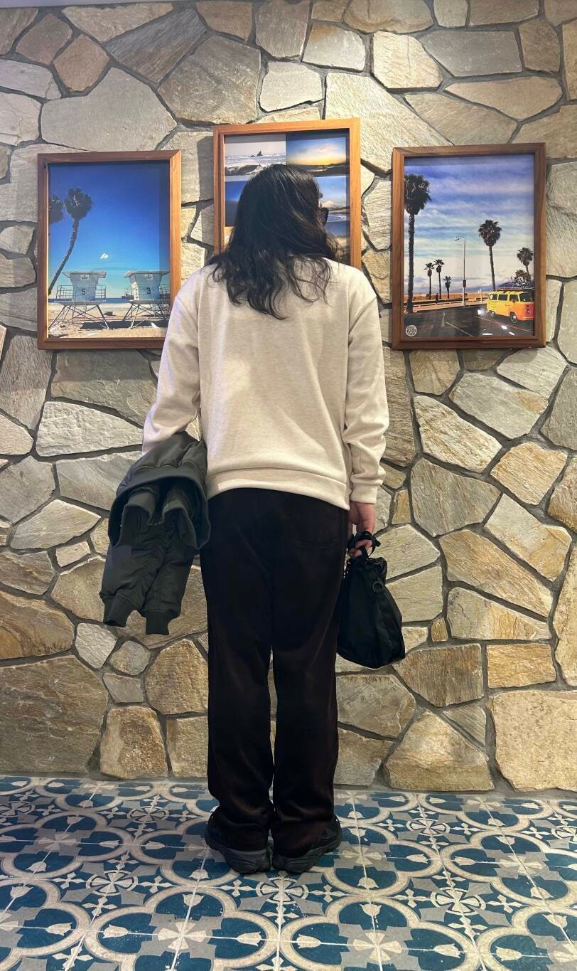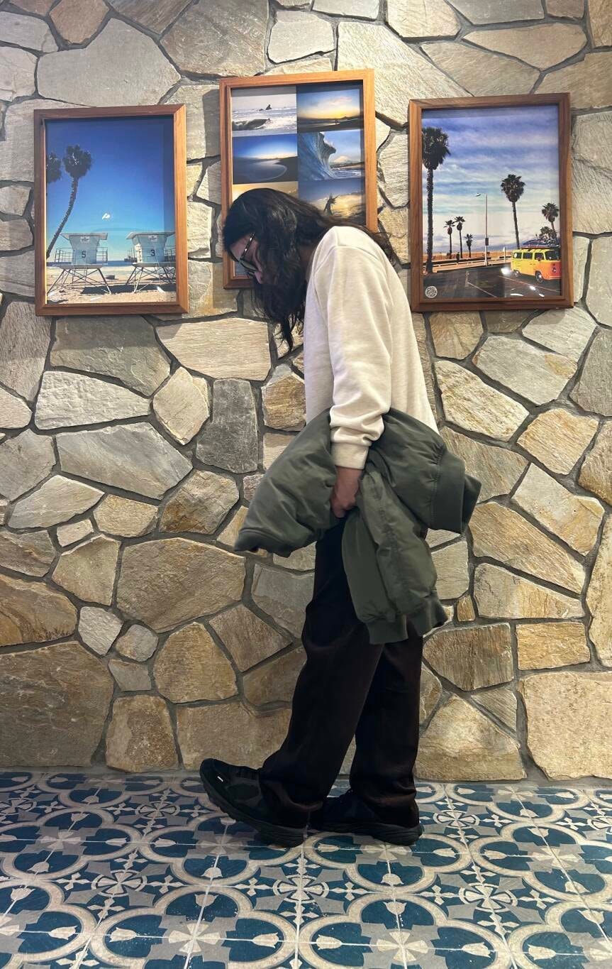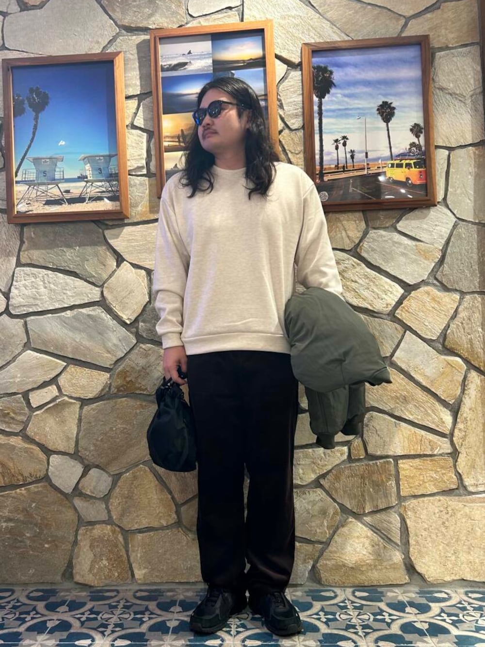 サイズ感はインナーに裏起毛スウェットを着用して、ジャストサイズです。