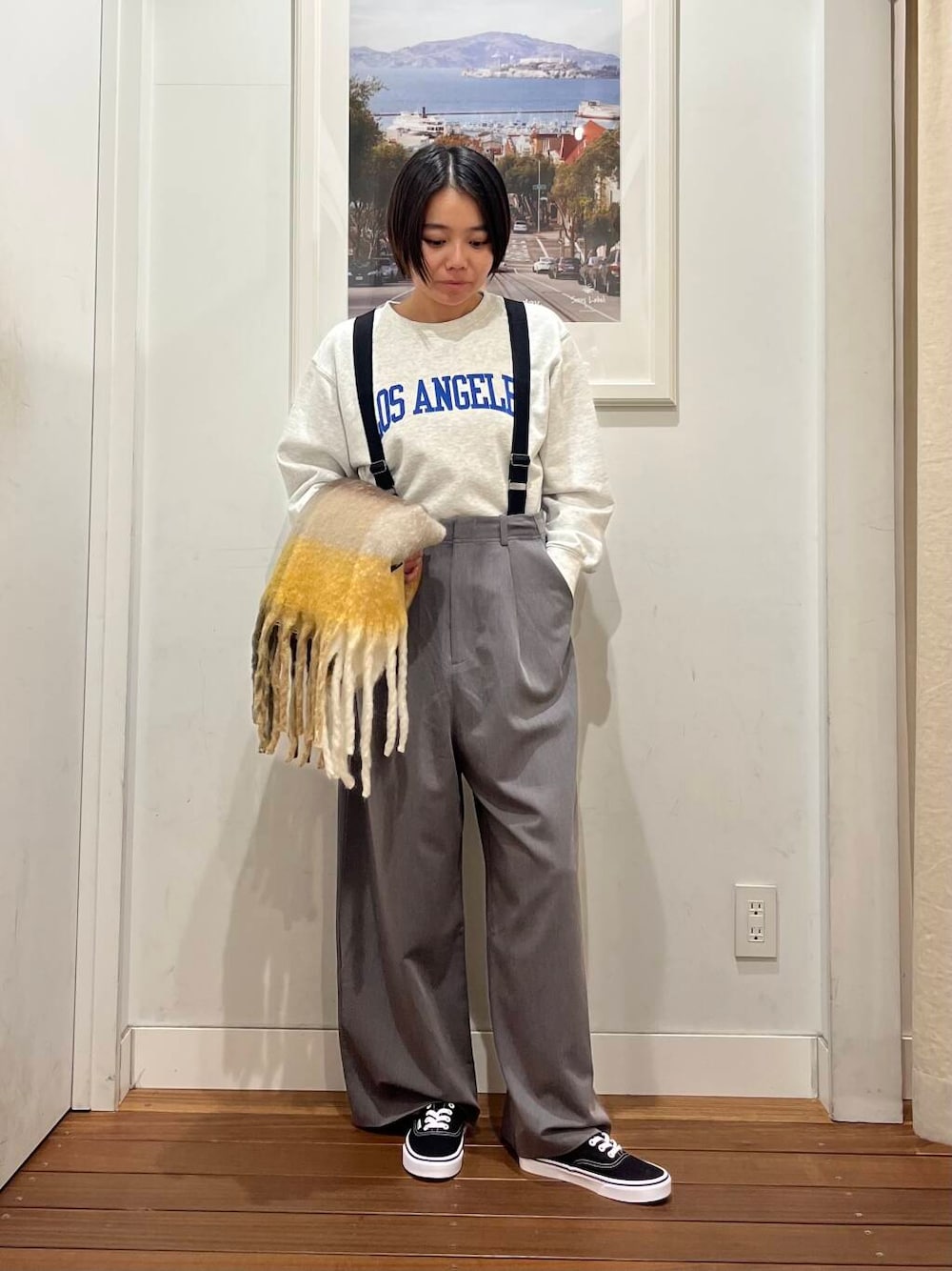 サスペンダー付きで、少しキチンと感も出ますが、スウェット合わせでカジュアルにもコーディネイトいただけます!!