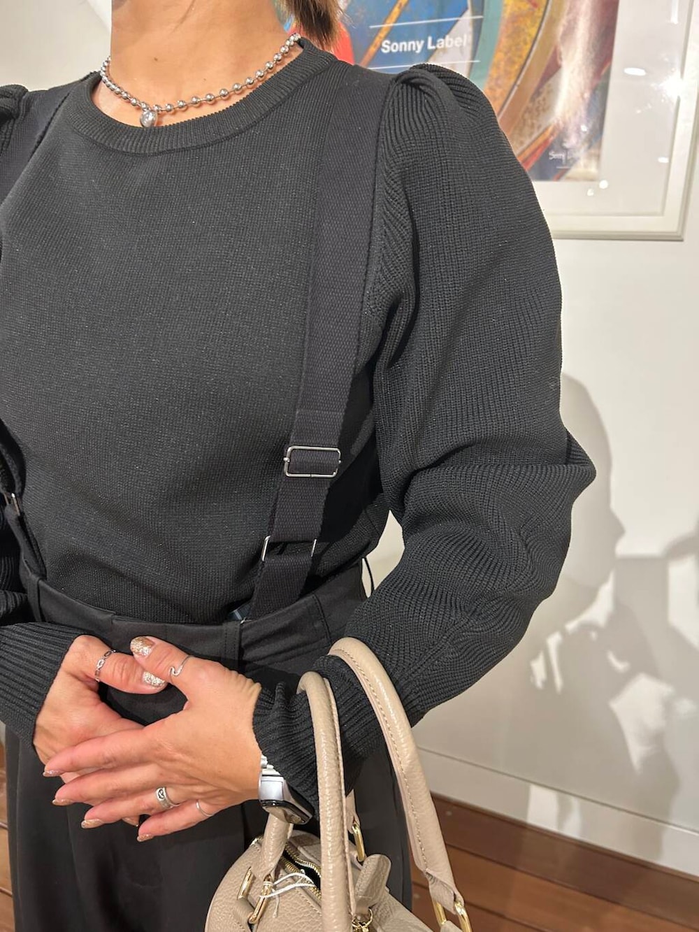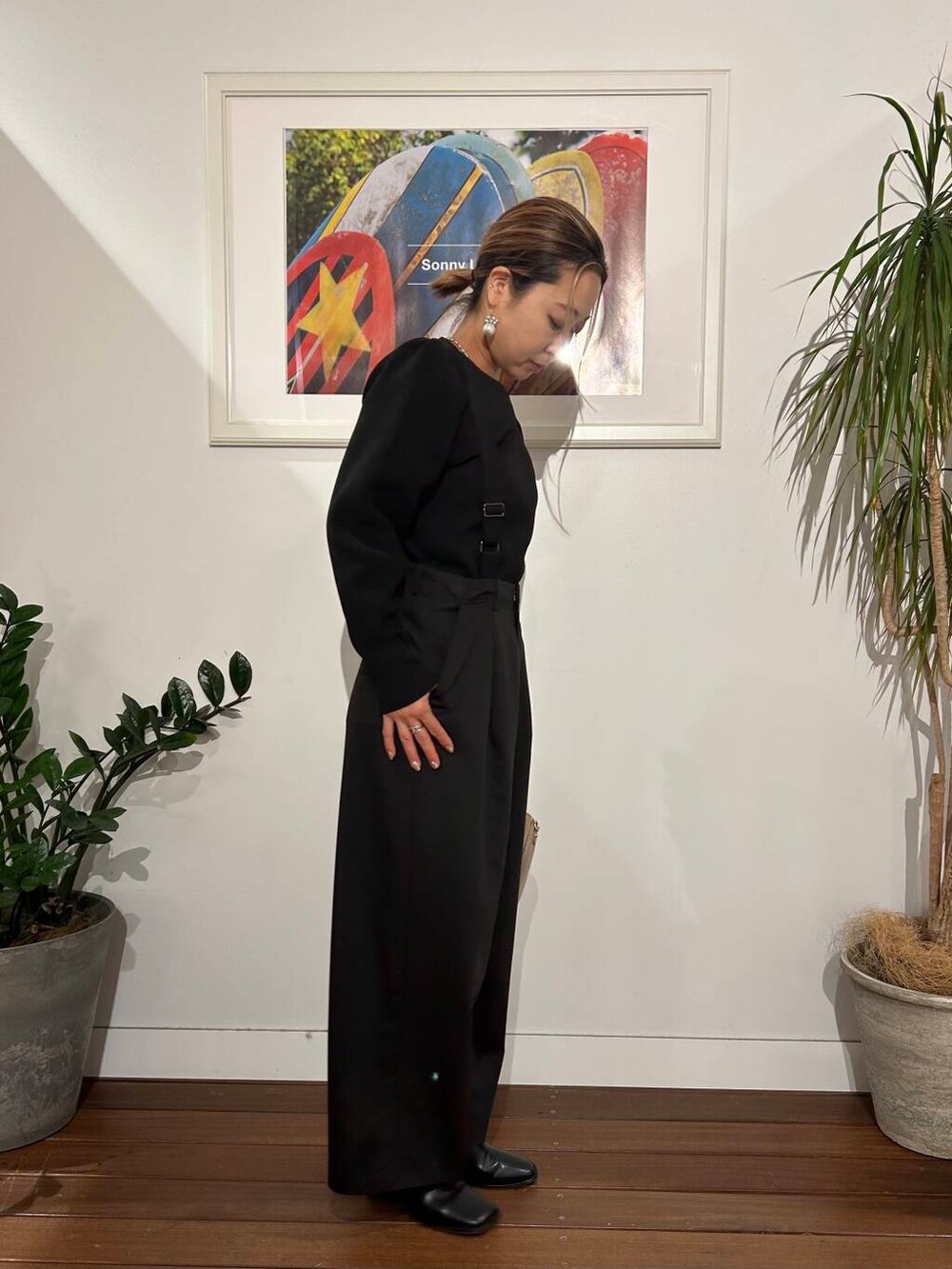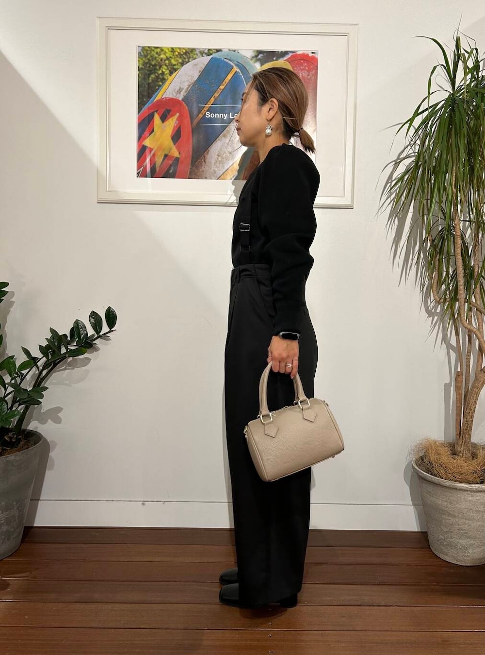 サスペンダーの取り外しが出来るタックパンツは綺麗めコーデの時にも使える優れ物!シルエットも綺麗なので着痩せ効果抜群です!