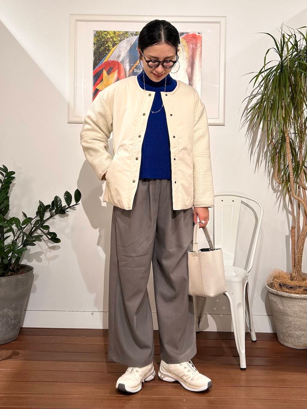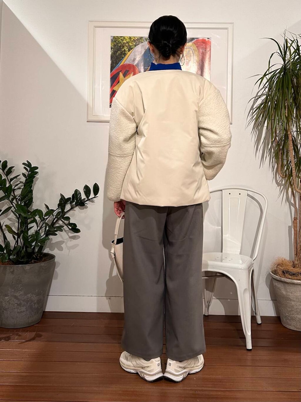 ダウンだと暑すぎる、、という方にオススメの軽アウター。軽いけど、中綿入りでちゃんと暖かい。春まで長ーく使える一枚です。