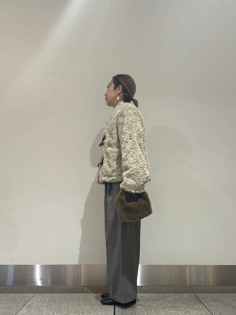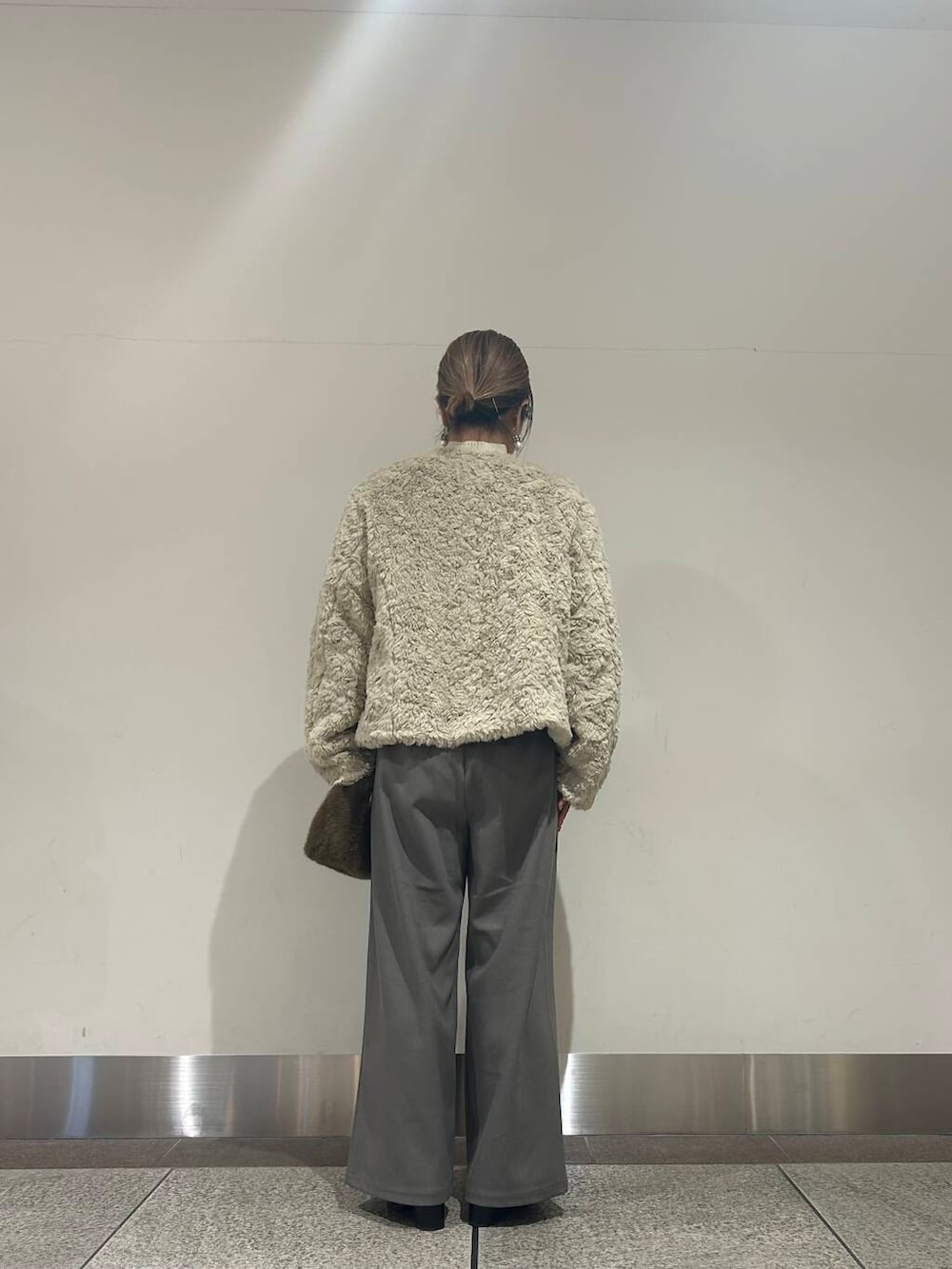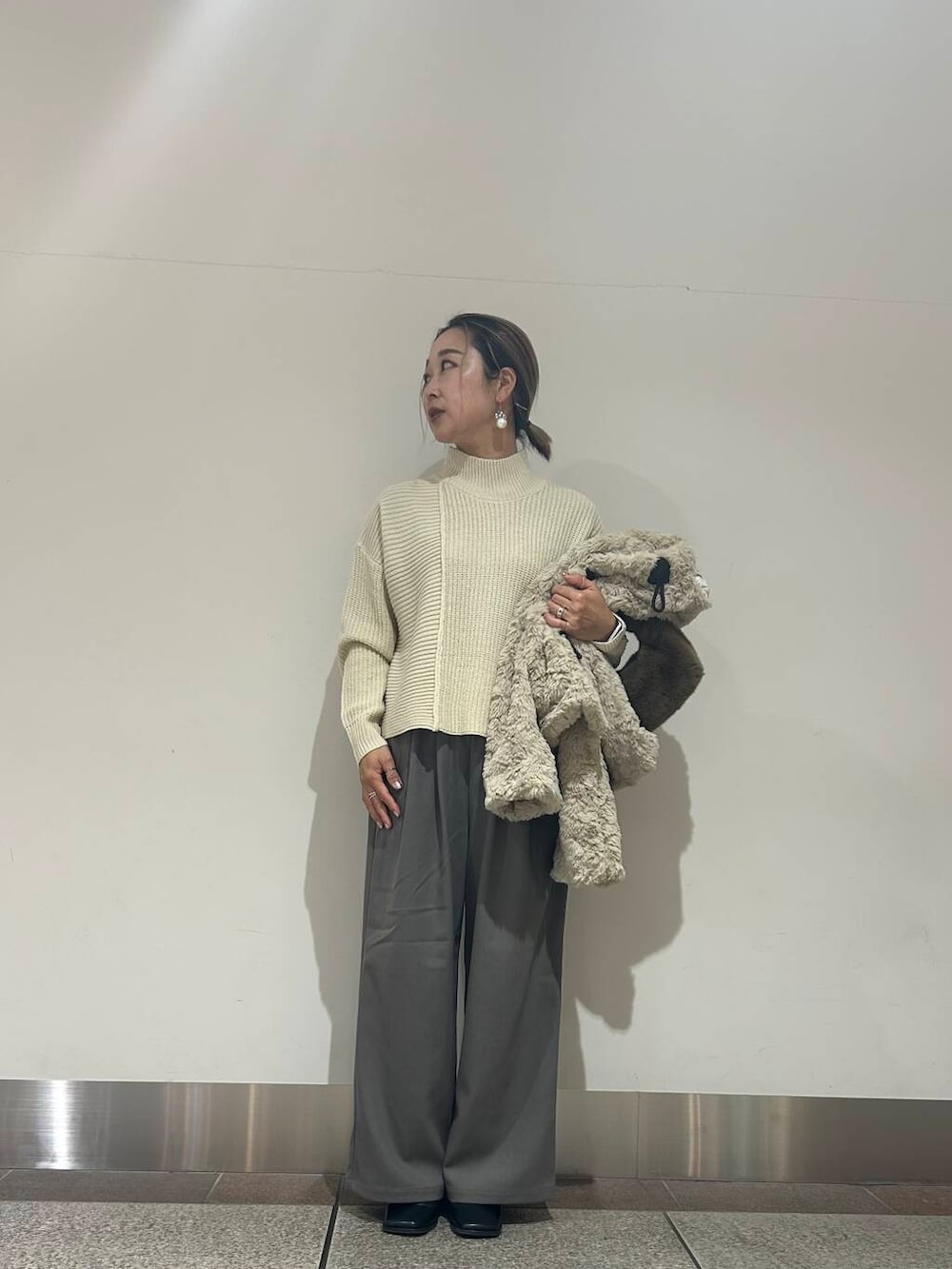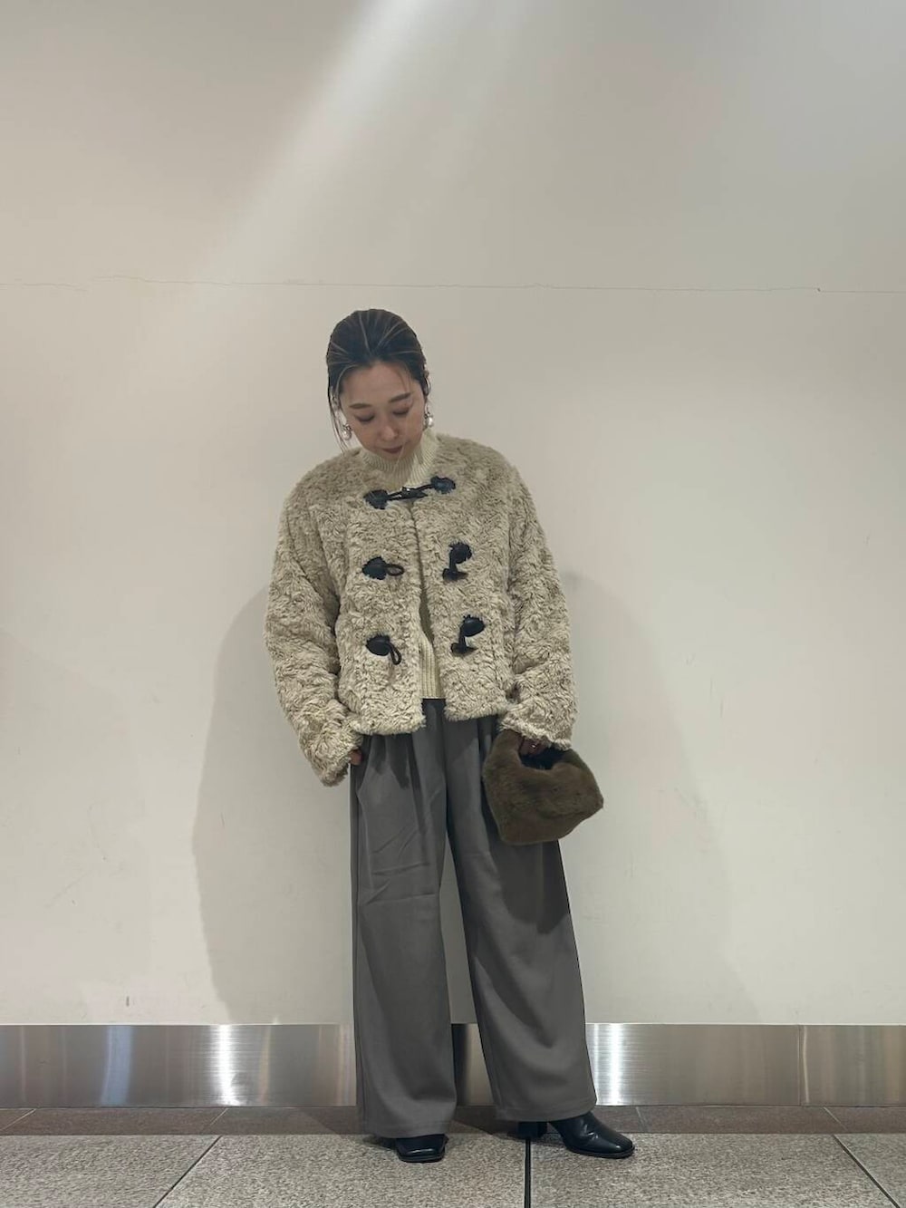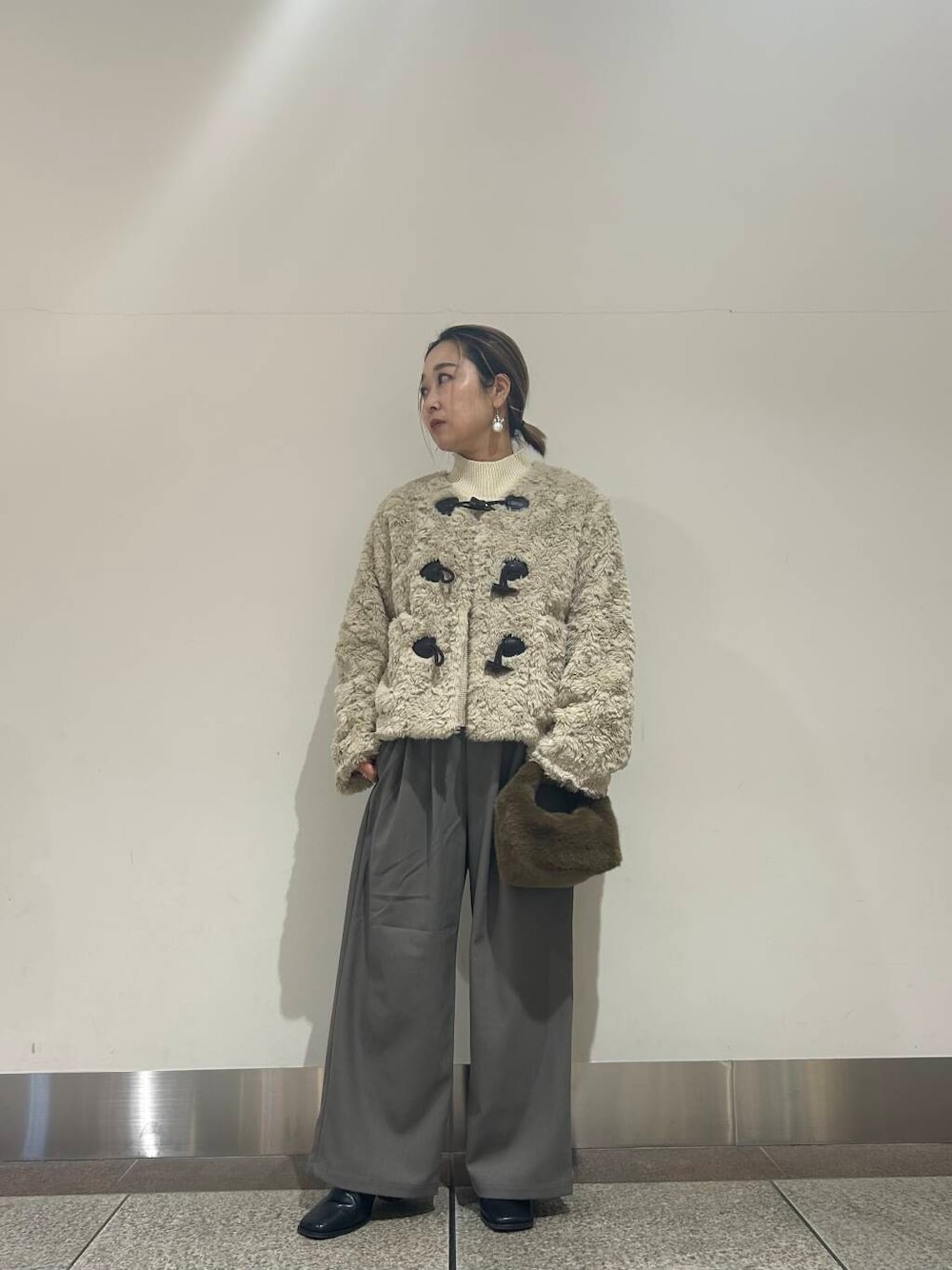 ノーカラーファーコートは、ハイネックのニットとの相性抜群!