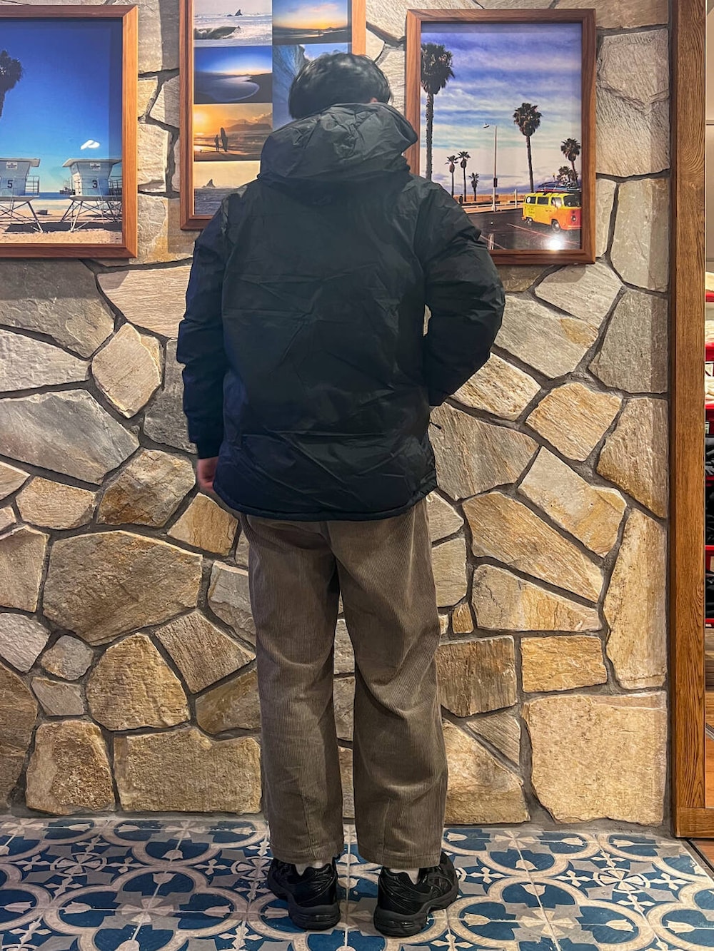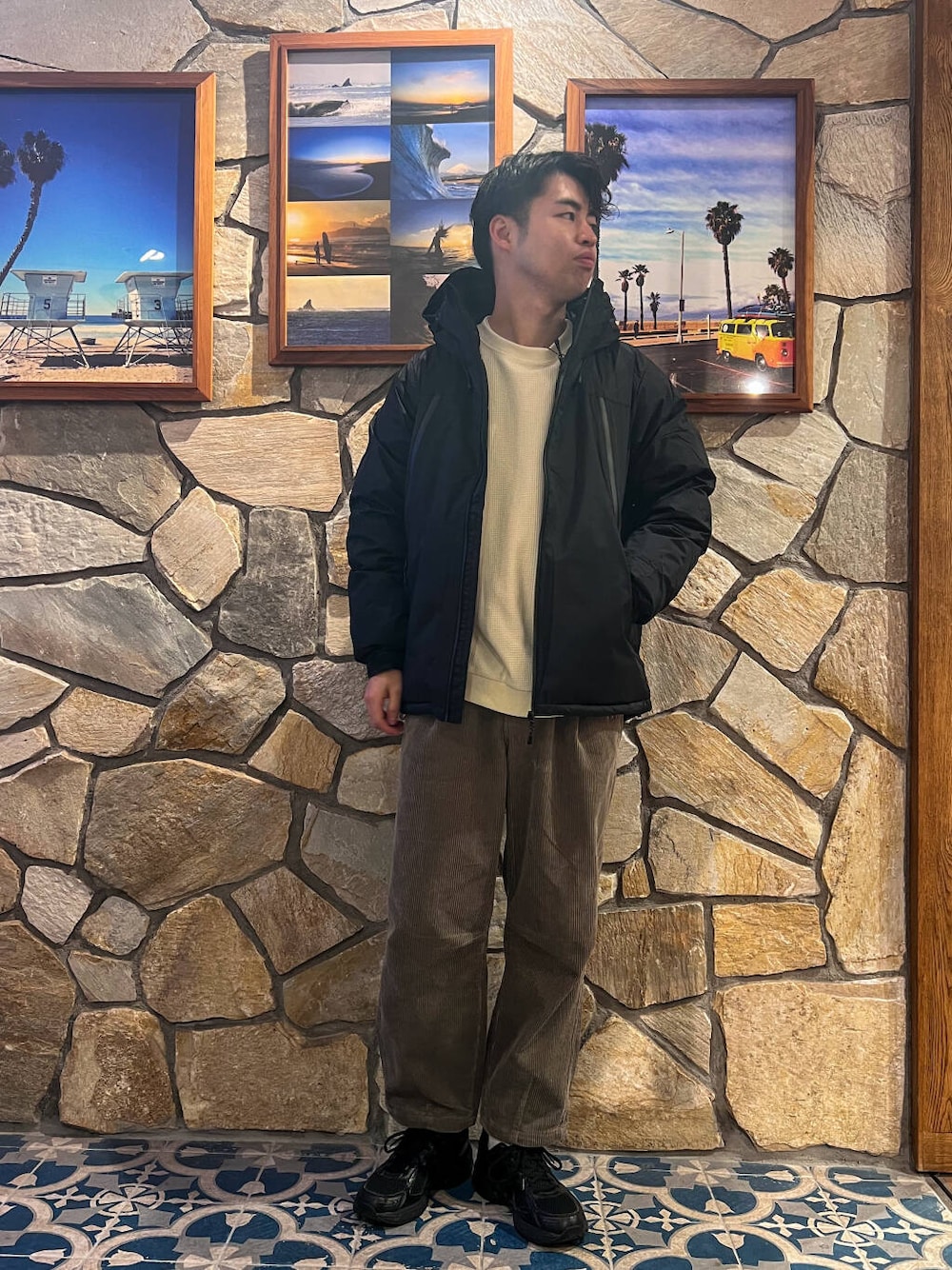コーデュロイパンツと合わせて、カジュアルらしさも取り入れてます。