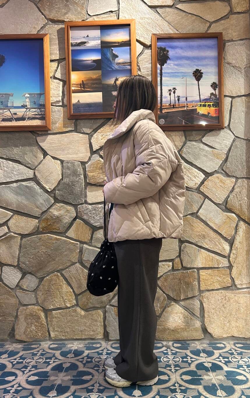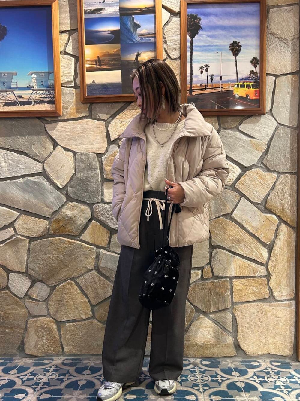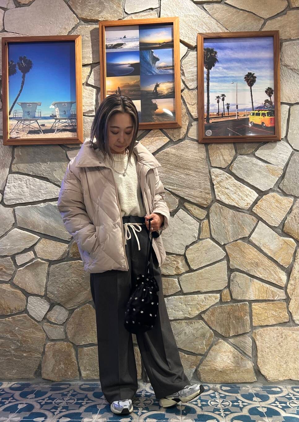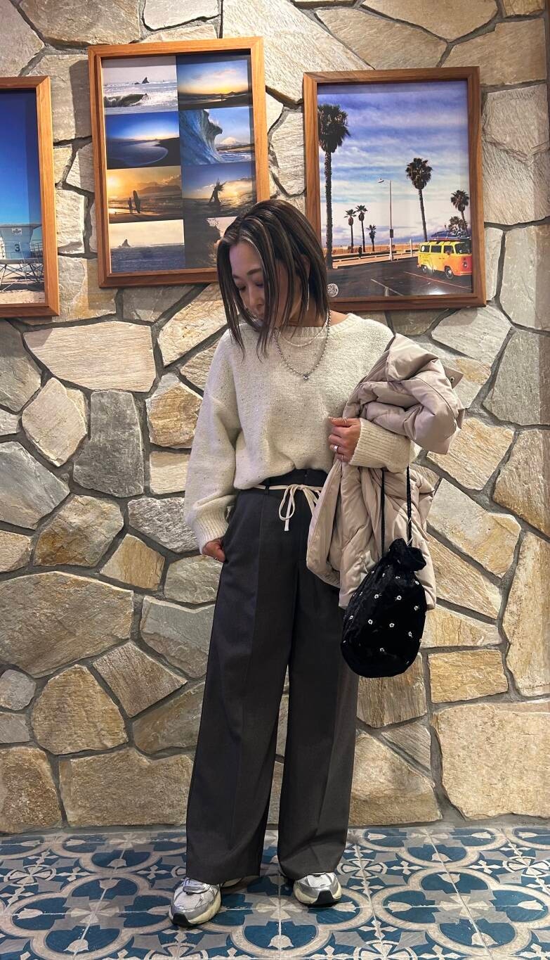 タックがはいったパンツは、シルエットが良くゆったりニットとの相性抜群です!
