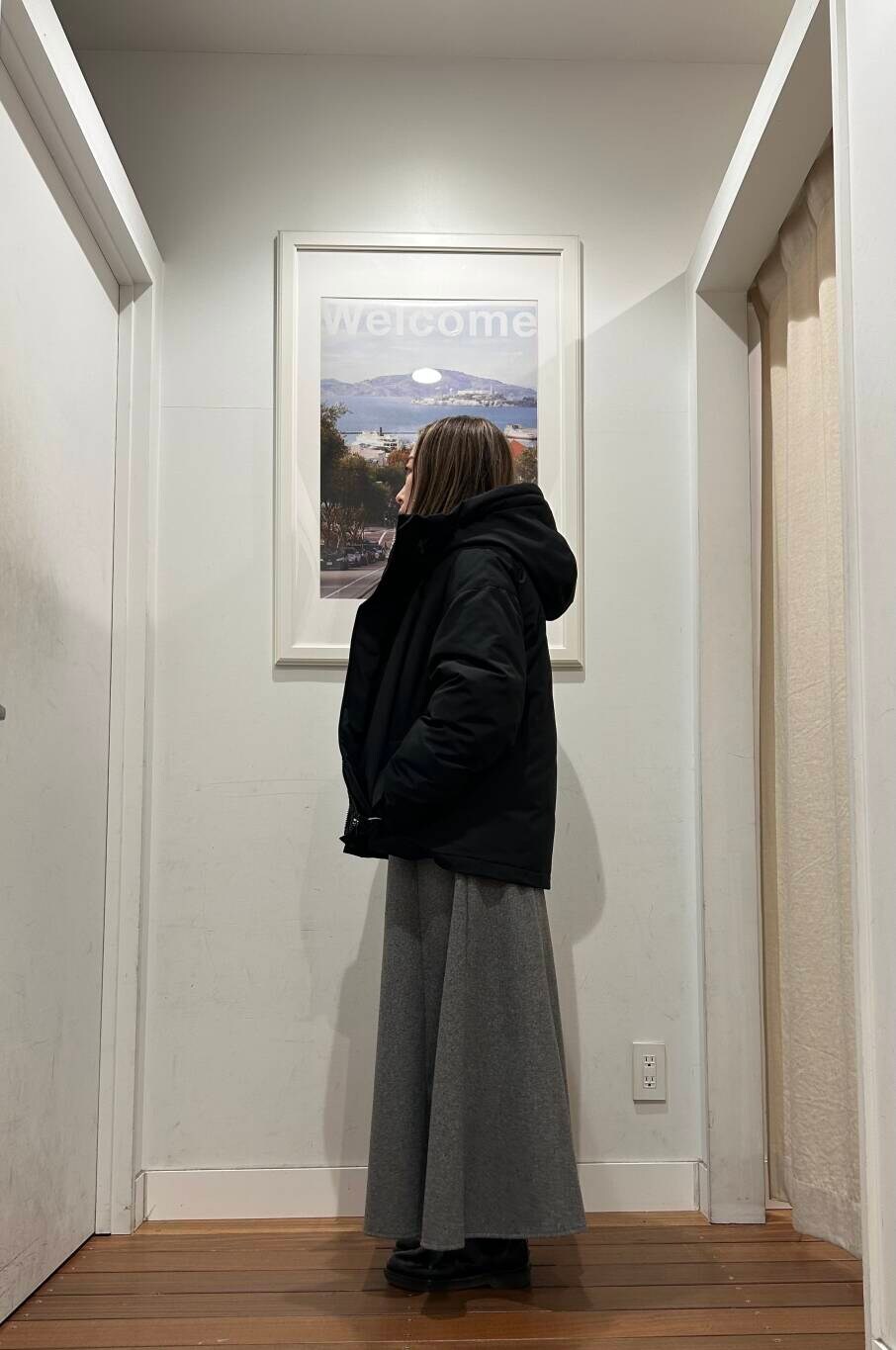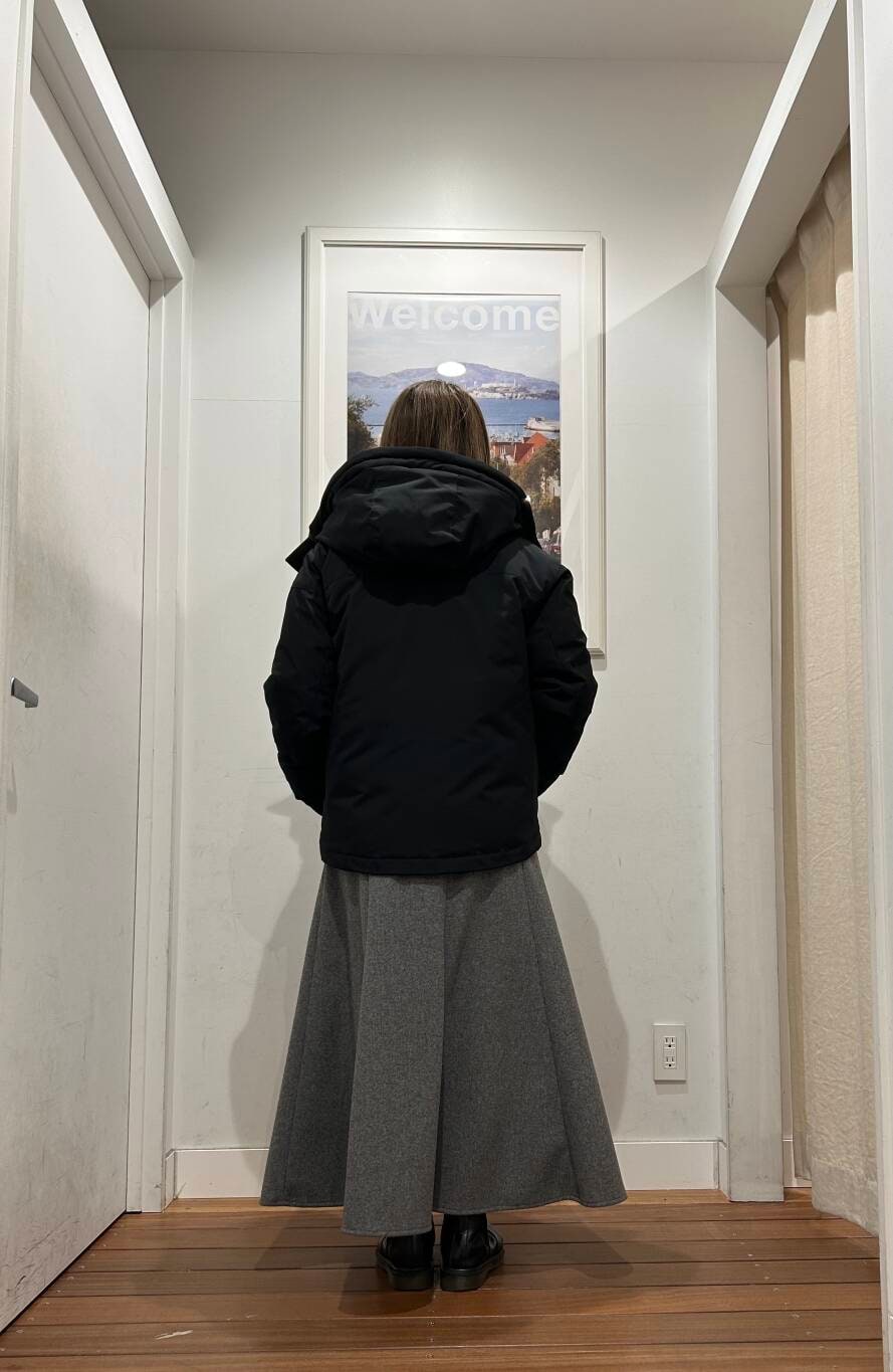 ピンク✖︎グレーで可愛らしいコーデを大人のアレンジでブラックダウンとブーツでまとめたコーデは今年もオススメです!