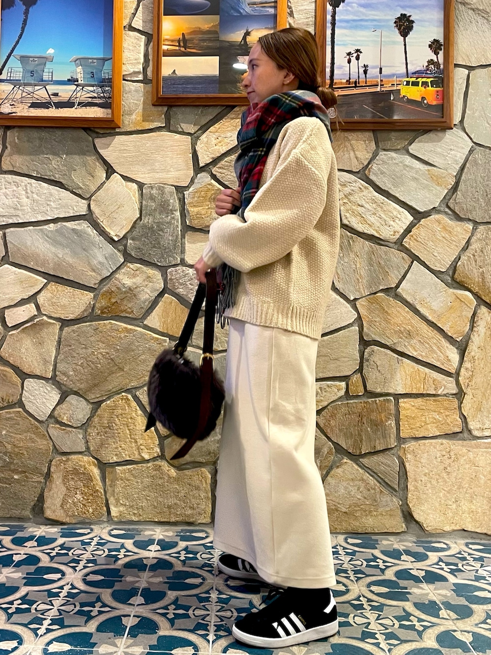 女性らしいゆったりニットがとても可愛いです。